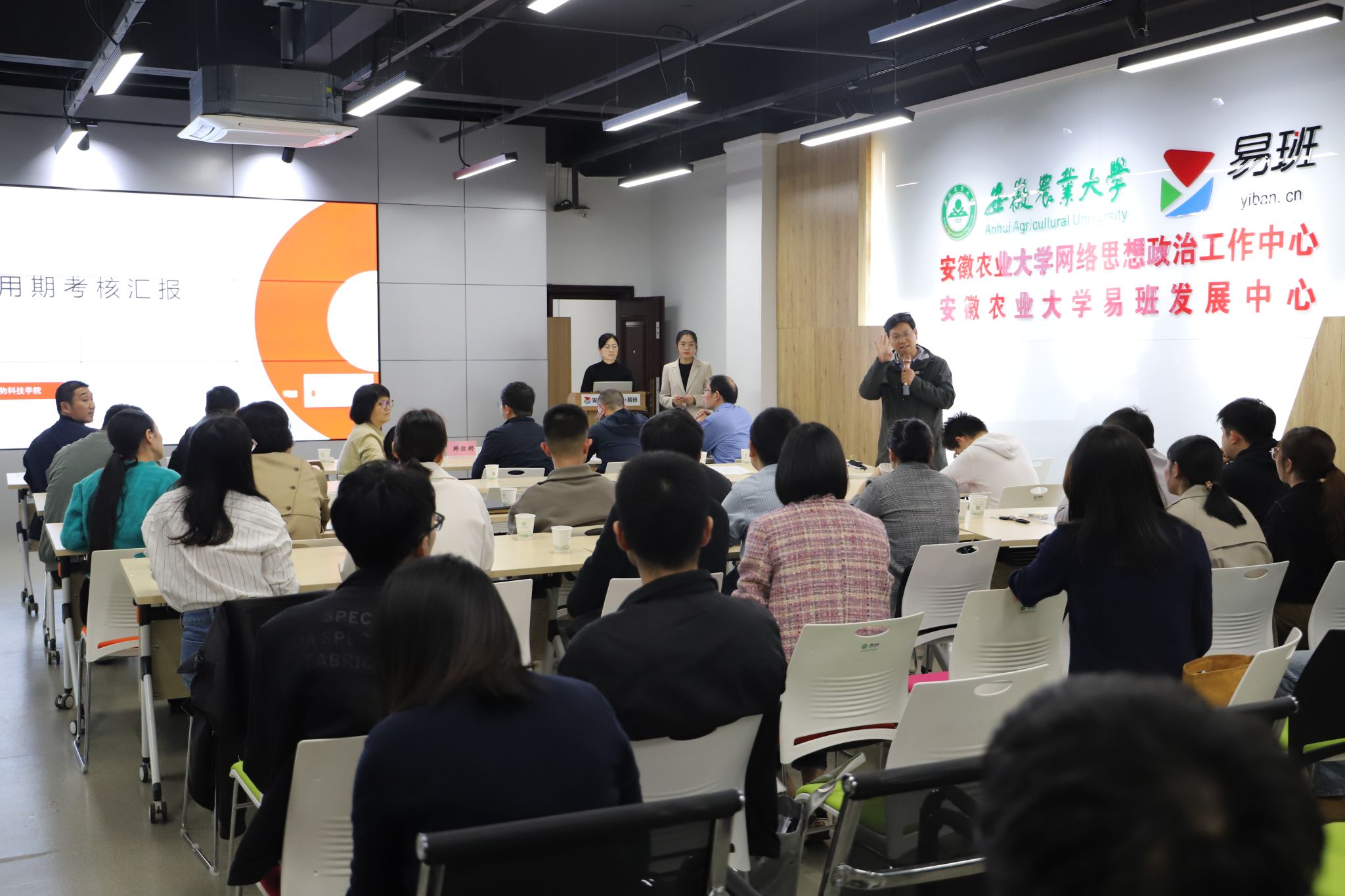 11月10日,2020年10月30日至2021年10月31日入职的专职辅导员试用期考核汇报展示在易班发展中心举行,校党委副书记裴树东,党政办、宣传部、学工部、招生就业处、研工部和团委等单位负责同志出席会议。来自各个学院的42位专职辅导员结合一年多以来的工作实践和思索进行了充分的交流,他们围绕工作职责,从思想教育和价值引领、班级管理和日常事务、学业指导、心理健康教育、职业规划与就业指导等方面总结了工作开展的成效及特色。此次考核汇报展示进一步加强了辅导员队伍的互学互鉴,共同进步。