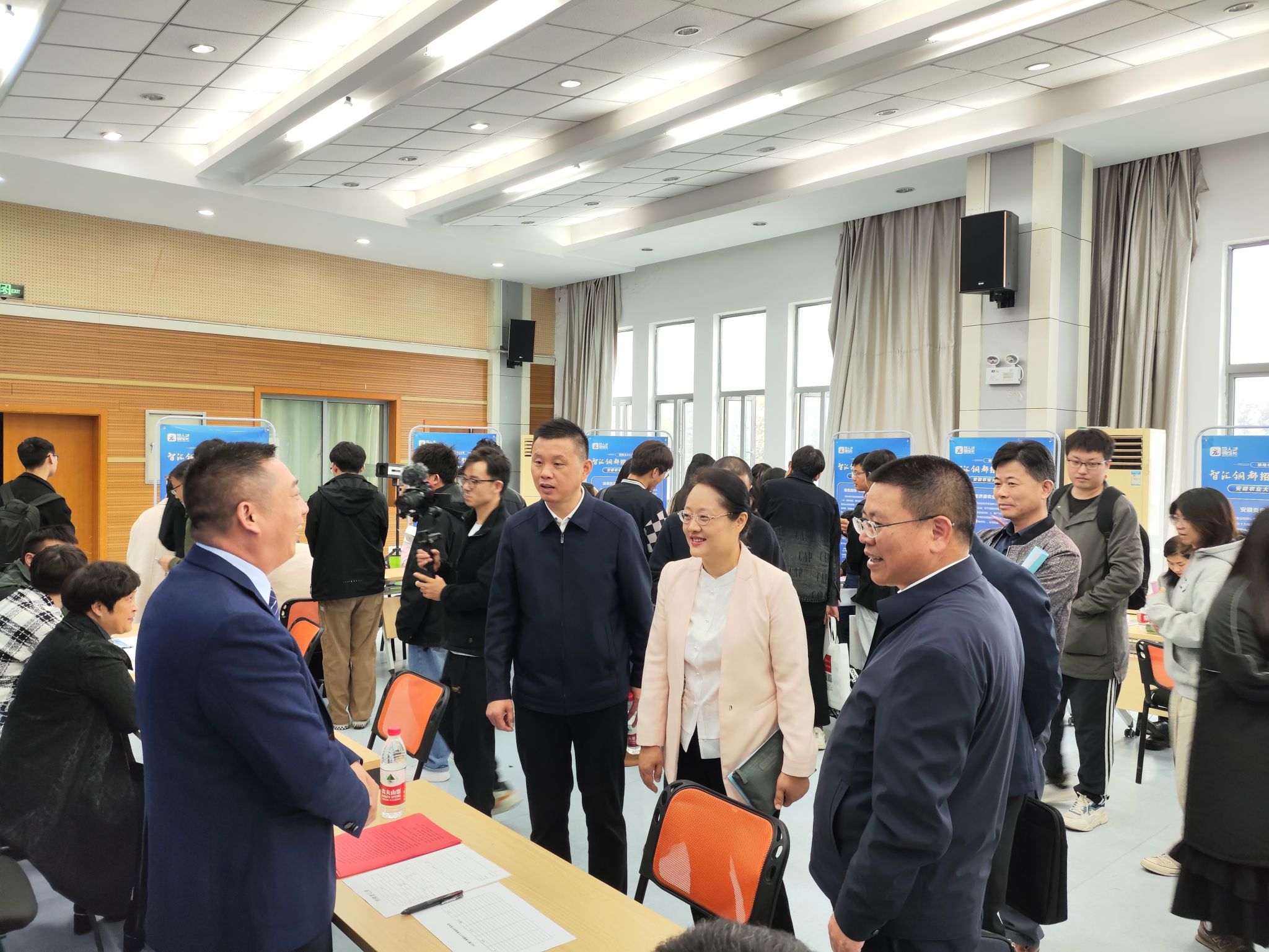 活动中,铜陵市人力资源和社会保障局负责人作铜陵市人才政策推介,铜陵市农业农村局负责人发布了农业企业岗位需求,重点招聘企业普农集团、有机地标分别作宣讲推介,在铜工作校友代表、我校2008届毕业生方慧娟分享了自己的创业经历。在随后举行的专场招聘活动中,共有铜陵市27家重点企业参加,提供就业岗位220余个,我校300余名毕业生参加了招聘活动。
