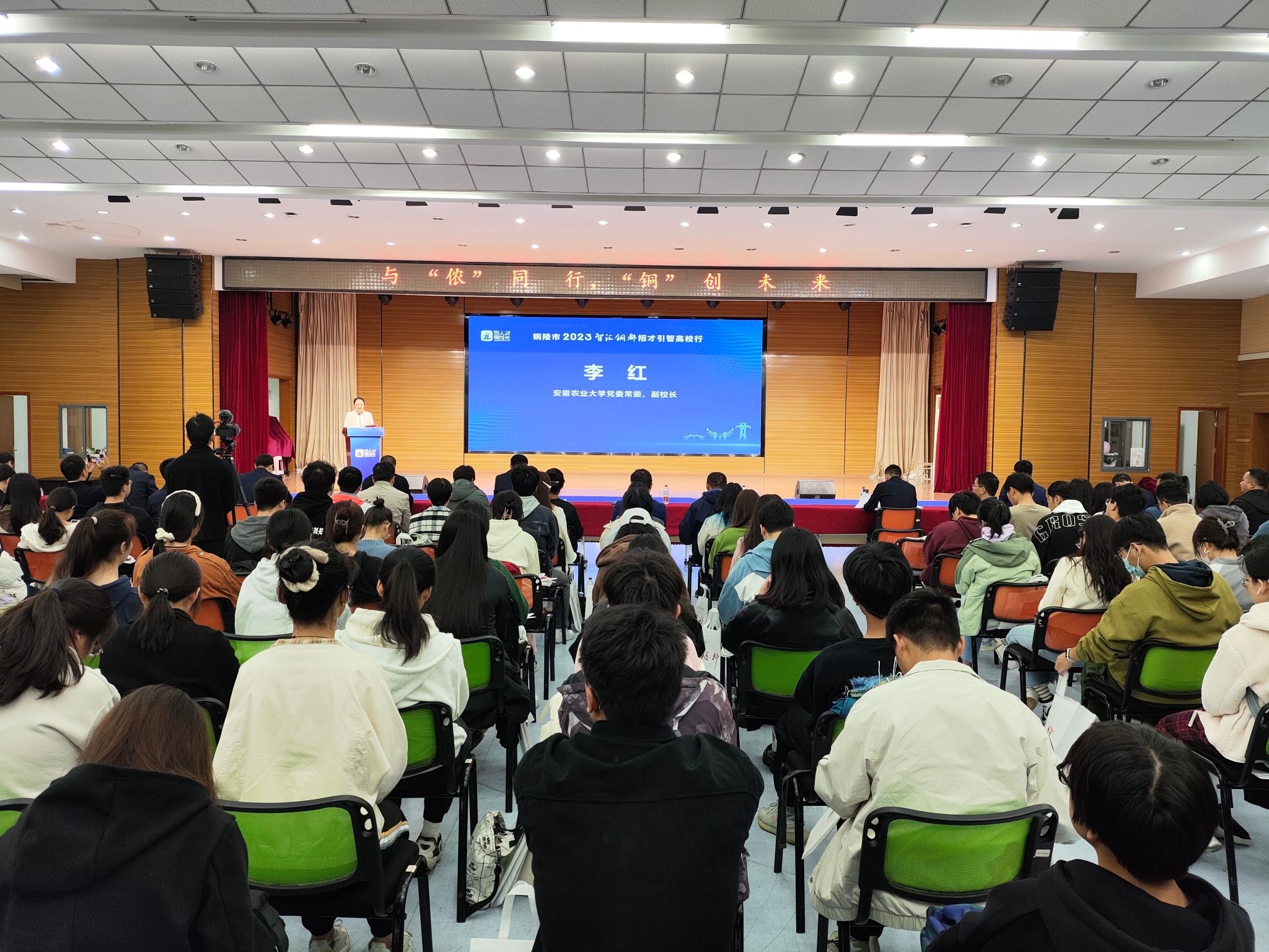 本网讯 11月9日上午,铜陵市2023年秋季招才引智高校行活动在我校举办。校党委常委、副校长李红、铜陵市人民政府副市长吴强出席活动并致辞。活动由铜陵市人民政府副秘书长张志远主持。