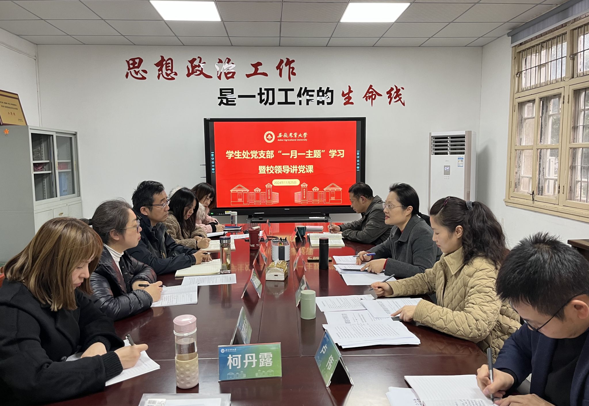 任琪领学了习近平总书记关于意识形态工作的重要论述及学校相关要求。她结合党支部意识形态工作实际,希望大家要在思想上高度重视、阵地上严格管理、责任上持续压实,确保意识形态工作各项任务落地见效。