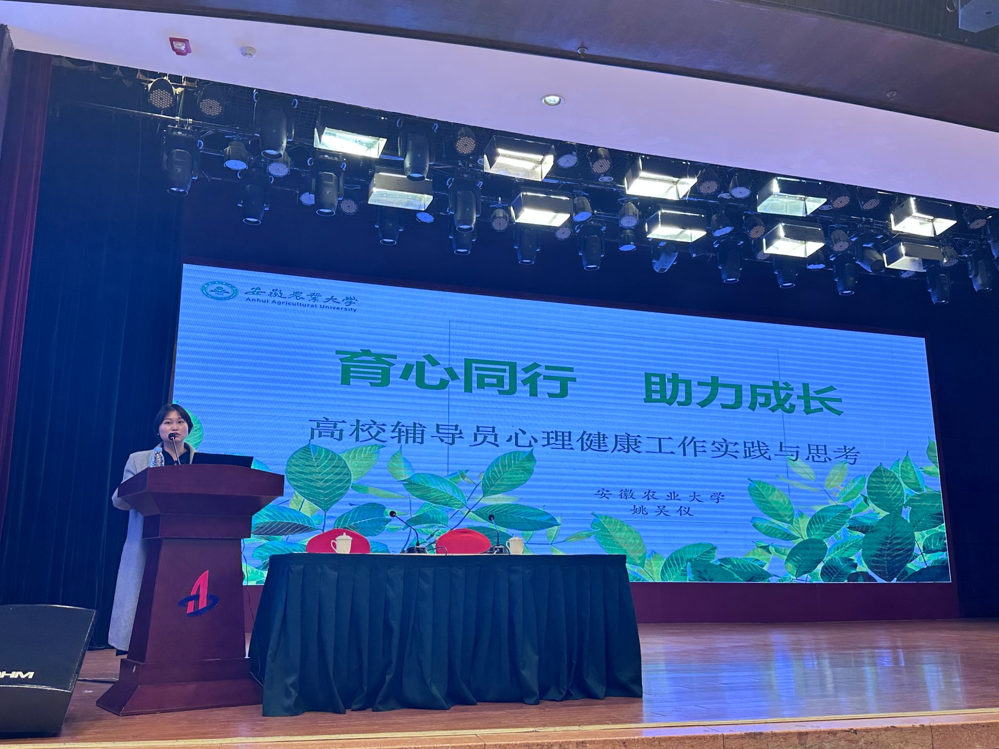 本网讯 12月17日—18日,安徽省教育厅主办的全省高校学生心理健康教育工作培训在蚌埠举行,全省高校学生工作部门主要负责人、心理健康教育中心负责人参加会议。我校人文社会科学学院辅导员姚吴仪在此次会议中作专题分享。
