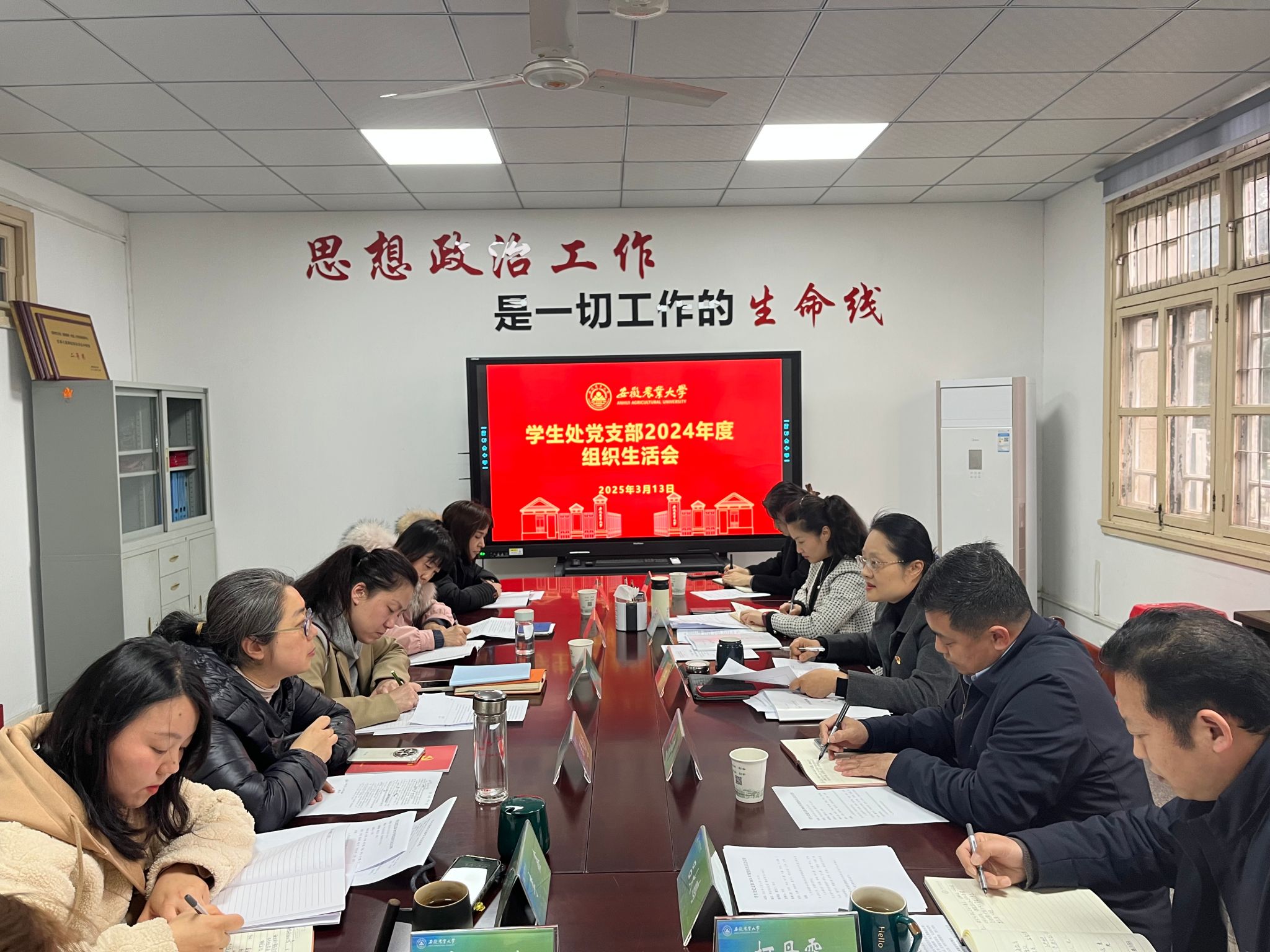 本网讯 3月13日下午,学生处党支部召开2024年组织生活会。校党委常委、副校长李红同志以普通党员身份参加所在党支部组织生活。机关党委委员、党政办公室主任戴照力到会指导,会议由支部书记任琪主持。