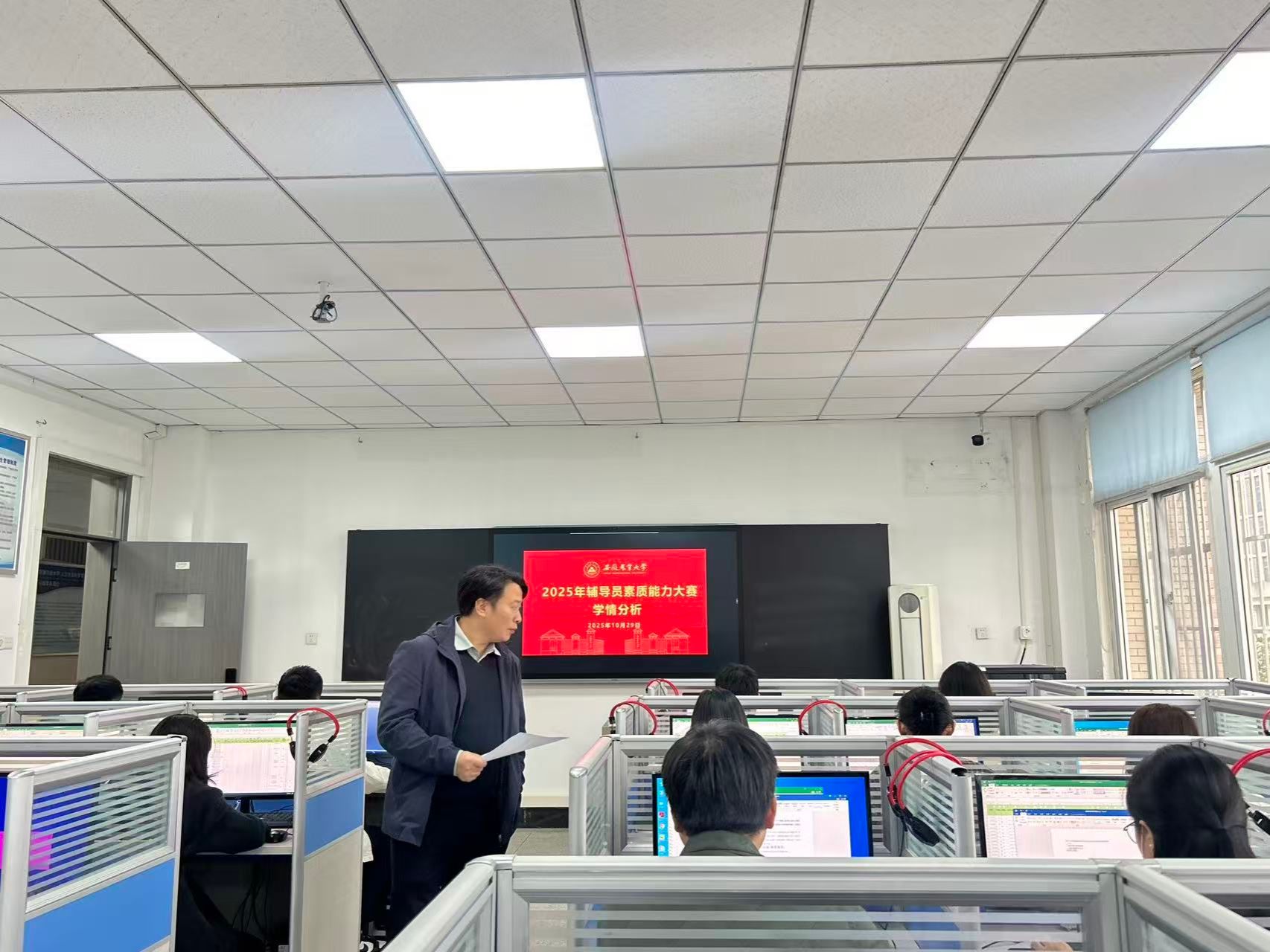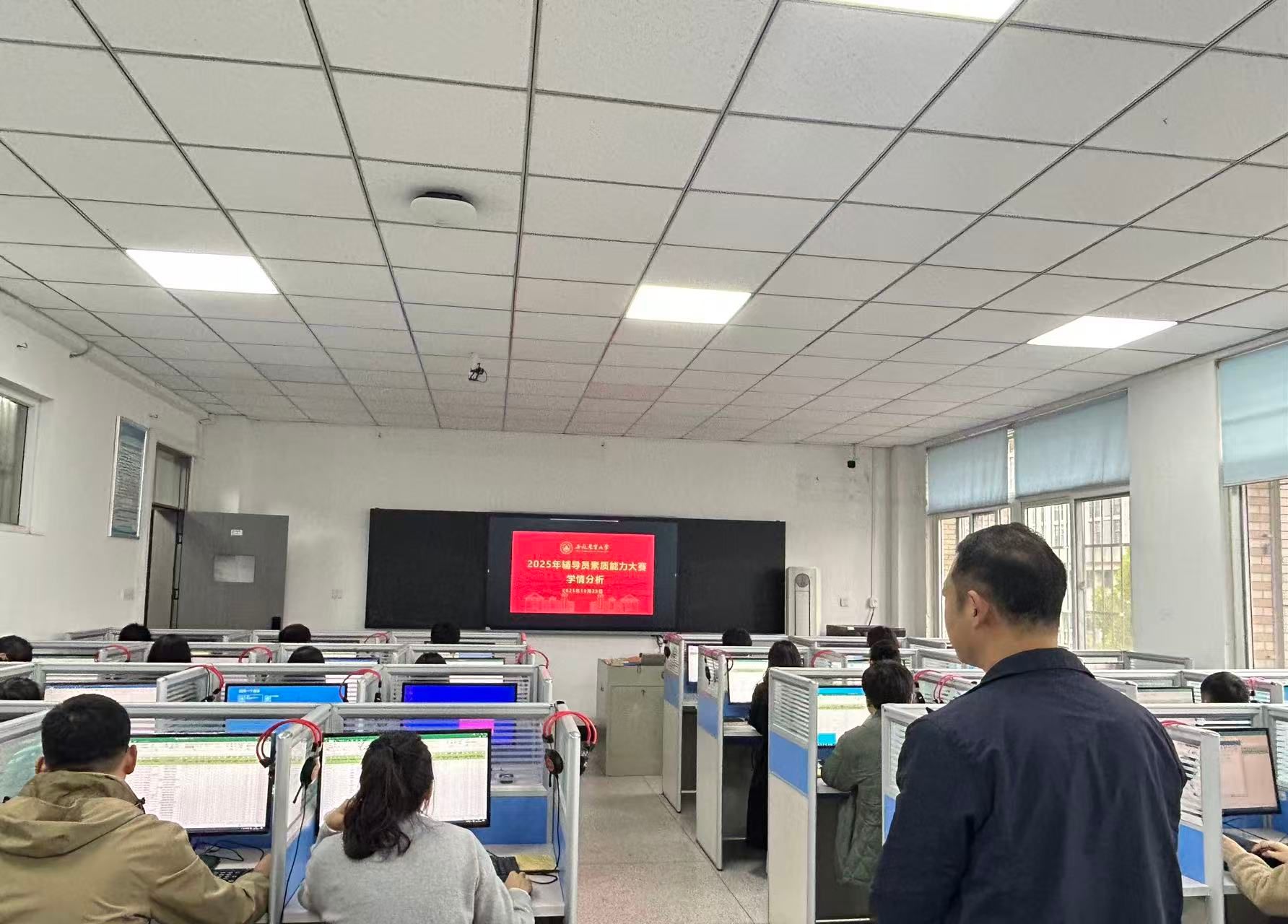 本网讯 为全面落实立德树人根本任务,进一步加强我校辅导员队伍专业化、职业化、专家化建设,切实提升专职辅导员的政治素养、业务能力和育人实效,推动新时代高校思想政治工作高质量发展。我校于2025年10月29日下午在人文楼412教室组织辅导员参加2025年辅导员素质能力大赛学情分析测试。