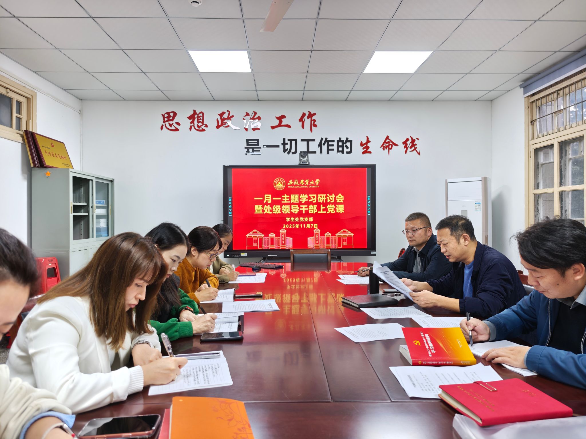 本网讯 11月7日下午,学生处党支部召开“一月一主题”学习会暨领导干部讲党课。学工部(处)副处长汪小强为支部党员讲授《坚守立德树人根本任务 为推进中国式现代化贡献更多学工力量》专题党课。会议由支部副书记吕大鹏同志主持。