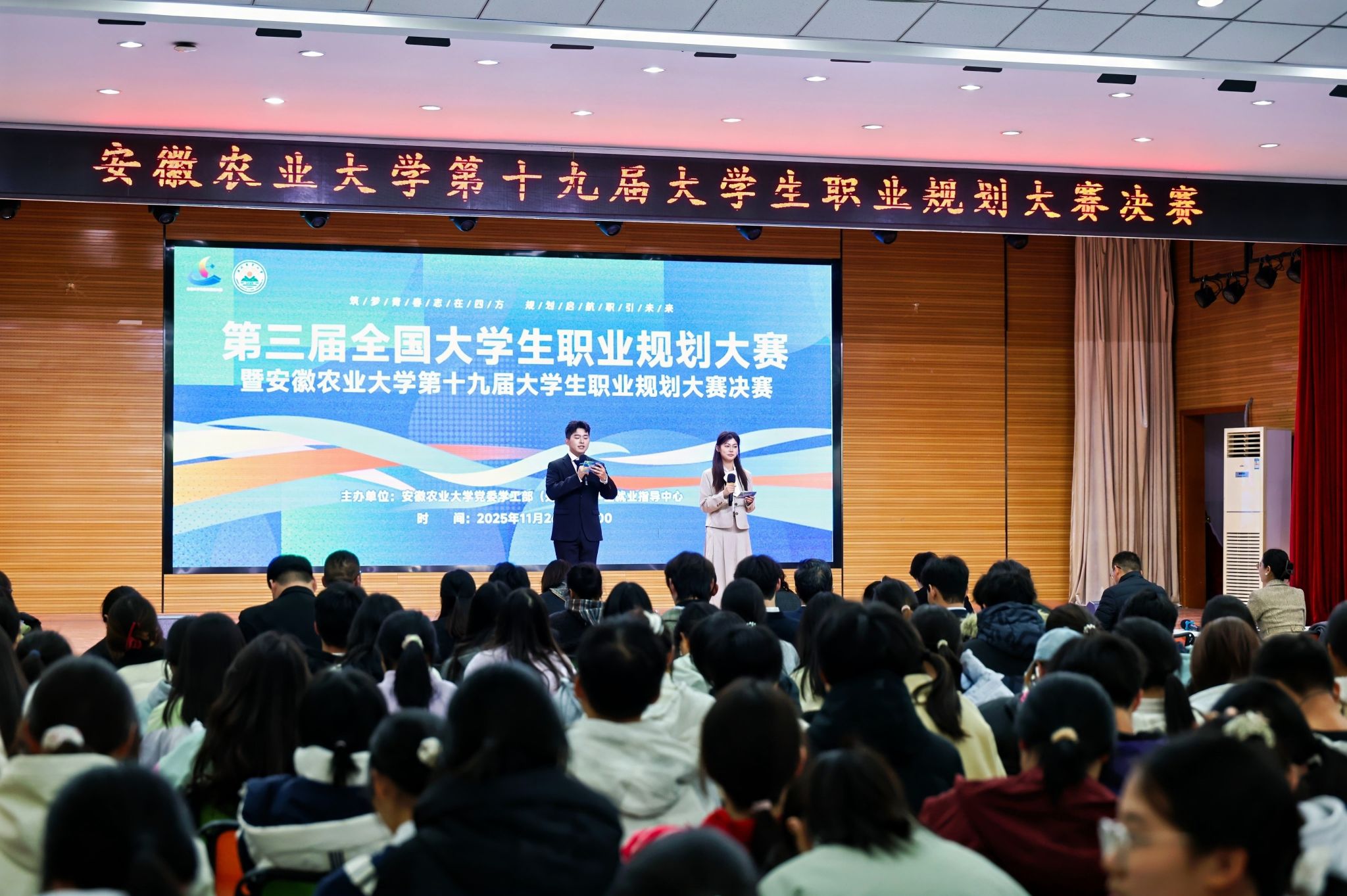 本网讯 11月26日下午,第三届全国大学生职业规划大赛校赛暨校第十九届大学生职业规划大赛决赛在校欣苑四楼大学生活动中心举办。21位学子参加决赛,呈现了一堂兼具思想深度与实践温度的“就业育人”思政公开课。