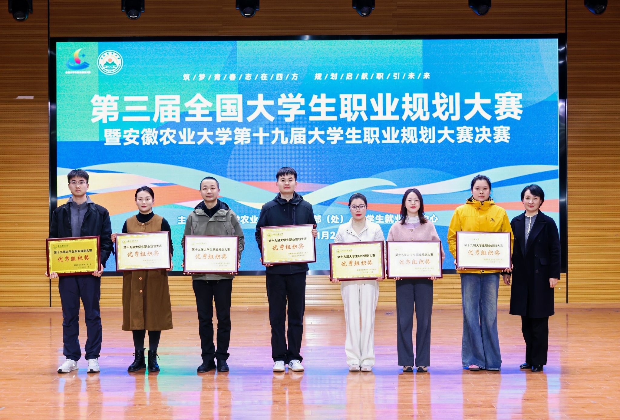 选手们通过主题陈述、评委问答等环节,紧扣个人职业目标,从职业认知的深度剖析、自我探索的精准画像到职业胜任力的全面展现,彰显着安农学子的专业素养。经过激烈比拼,共决出一等奖8名、二等奖13名、三等奖60名。林学与园林学院、材料与化学学院、经济管理学院、人文社会科学学院、植物保护学院、外国语学院、农学院、动物科技学院获最佳组织奖。