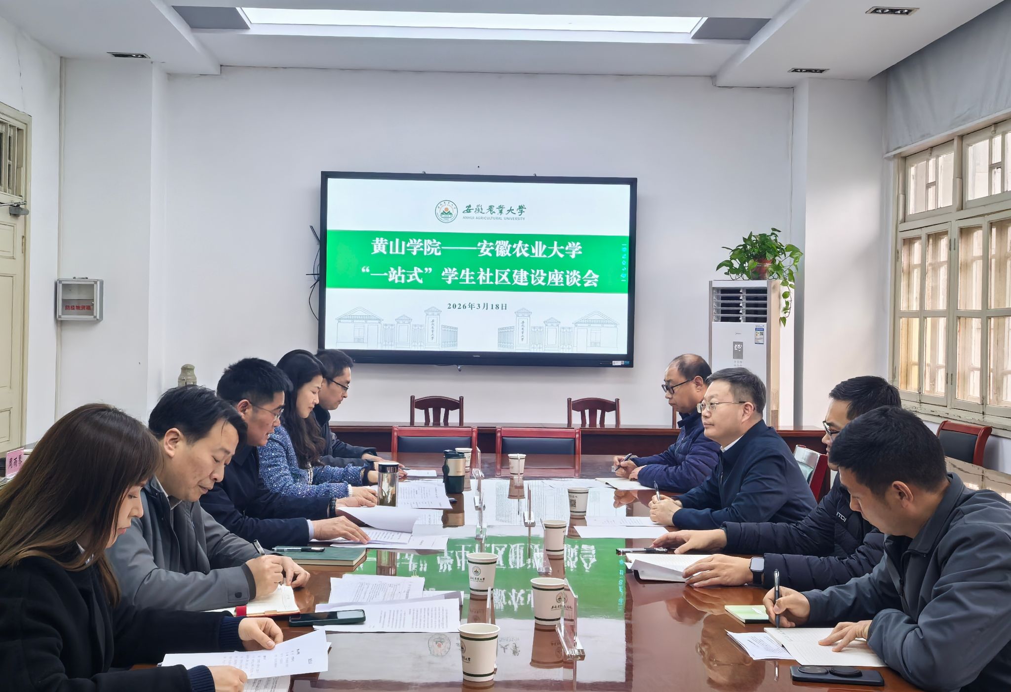 本网讯 3月18日,黄山学院党委副书记刘力一行来校,就“一站式”学生社区建设和学生工作信息化等相关工作进行座谈交流。党委常委、纪委书记、监察专员程道传主持座谈会。