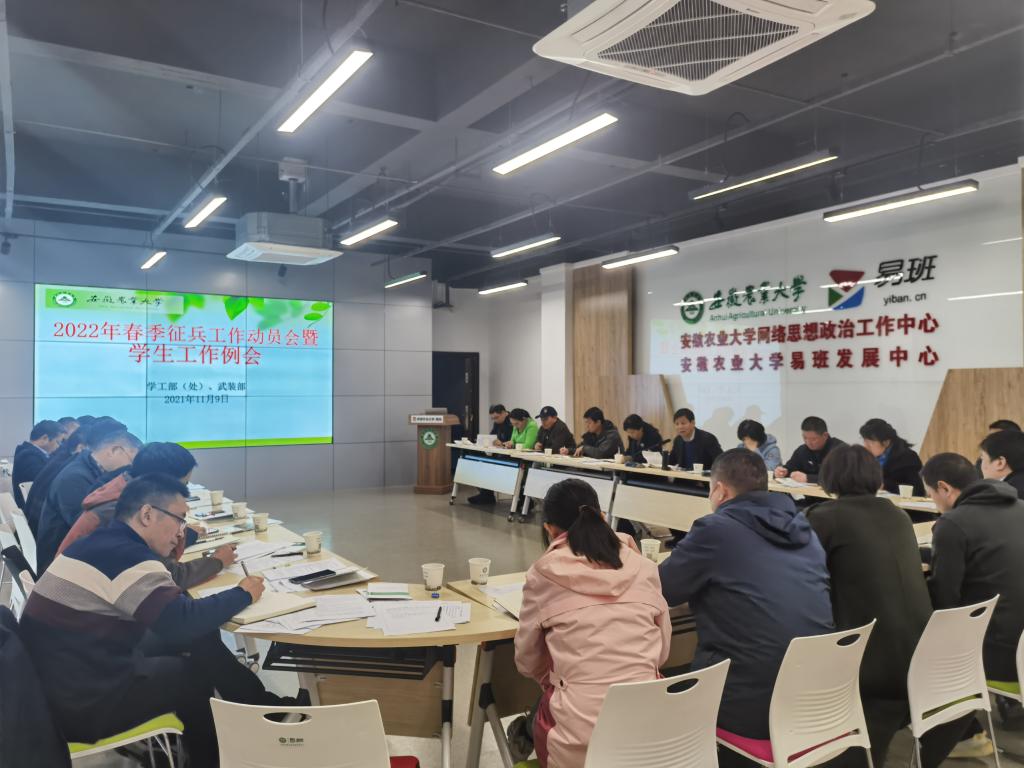 本网讯 11月9日上午,我校在易班发展中心召开2022年春季征兵工作动员暨学生工作例会,校党委副书记裴树东主持会议。相关职能部门负责人和各学院学生工作负责人参加。
