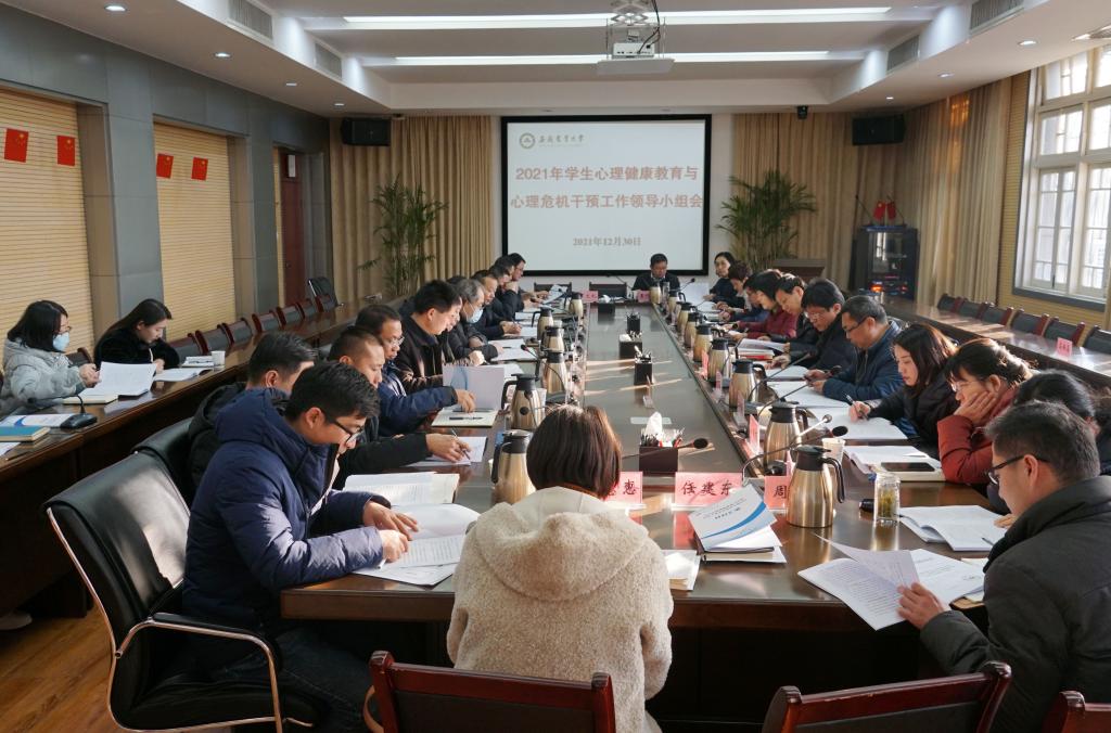 本网讯 12月30日下午,我校召开2021年学生心理健康教育与心理危机干预工作领导小组会议,对我校学生心理健康教育工作进行分析研判、部署推进。校党委副书记裴树东主持会议,校党委常委、副校长韩军出席会议。校学生心理健康教育与心理危机干预工作领导小组成员单位负责人和各学院分管学生工作负责人参加会议。