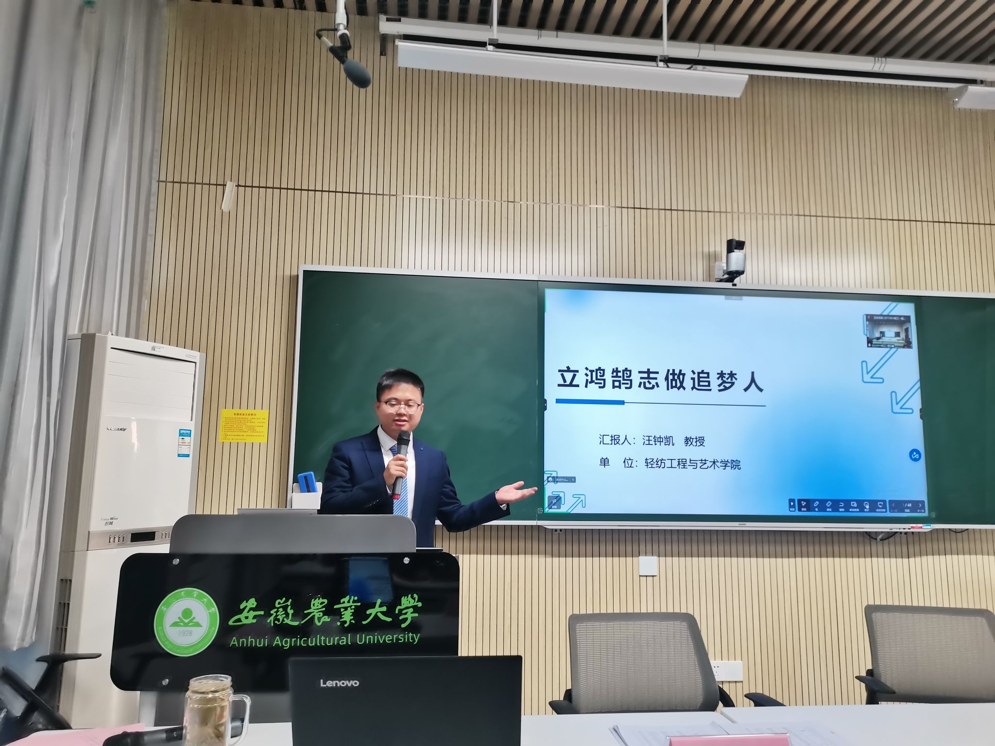 汪钟凯做了首场专题报告《立鸿鹄志,做追梦人》,他通过讲述个人求学经历和专业研究方向,激励学生向创新性、研究性学习转变,并对“轻创班”全体同学送上寄语,希望同学们能将青春理想与精进学业、科研创新相结合,与扎根大地、知行合一相结合,与服务人民、奉献祖国相结合,唯有坚定科技报国信念,不畏艰难险阻,不断向科学技术的广度和深度进军,把“卡脖子”清单变成科技创新清单,才能持续产出更高水平的原创成果,肩负起历史赋予的科技创新重任!
