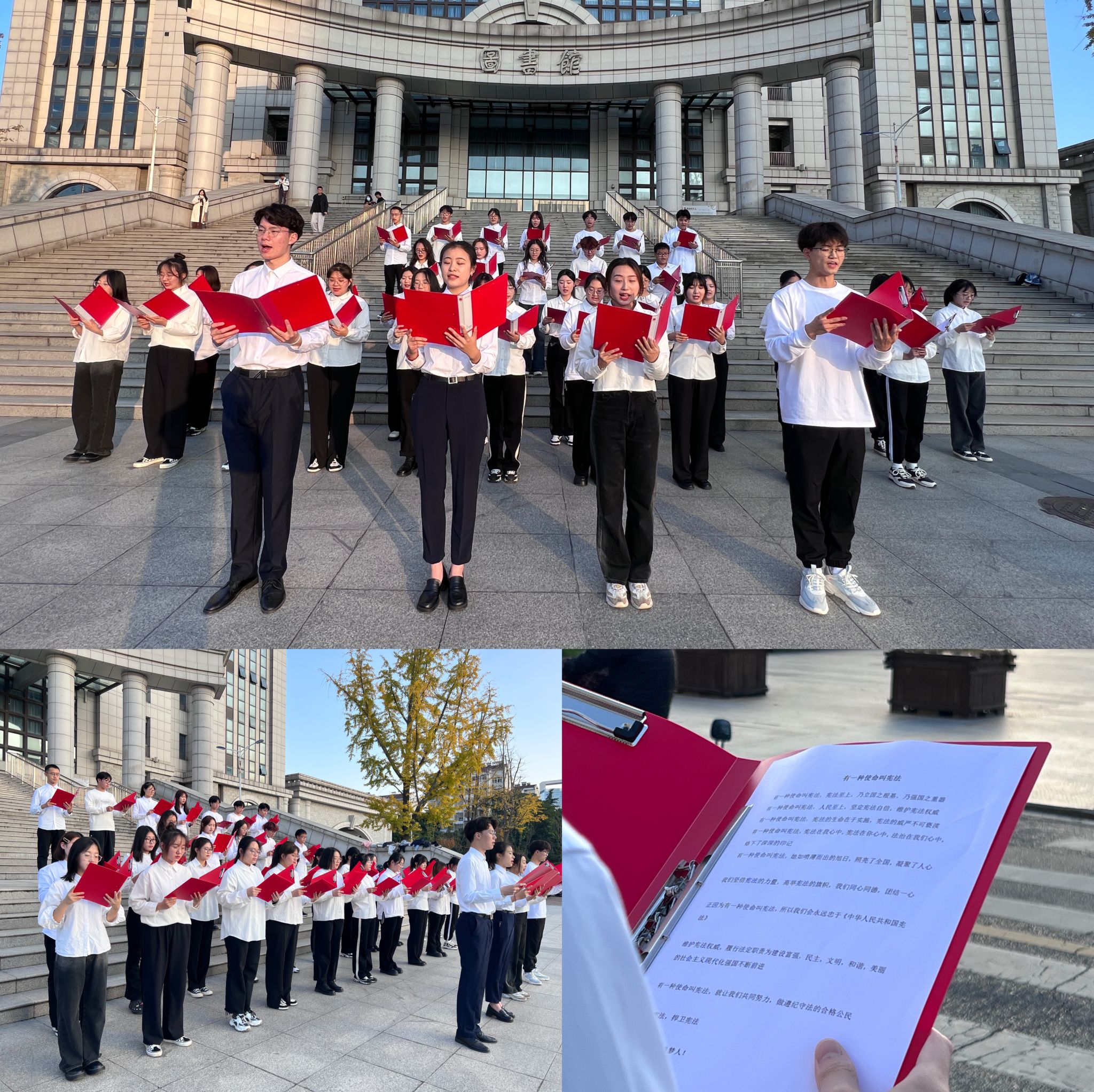 进行集体诵读,感受宪法温度。学院组织开展了“‘宪’入我心,与‘宪’”同行宪法晨读活动,在庄严的国歌声中,同学们以饱满热情的精神状态,集体诵读诗歌《有一种使命叫宪法》。同学们的朗诵声时而如洪钟般铿锵有力、时而如和风般轻柔绵长,充分表达了青年学子对宪法的无比热爱和尊崇之情。