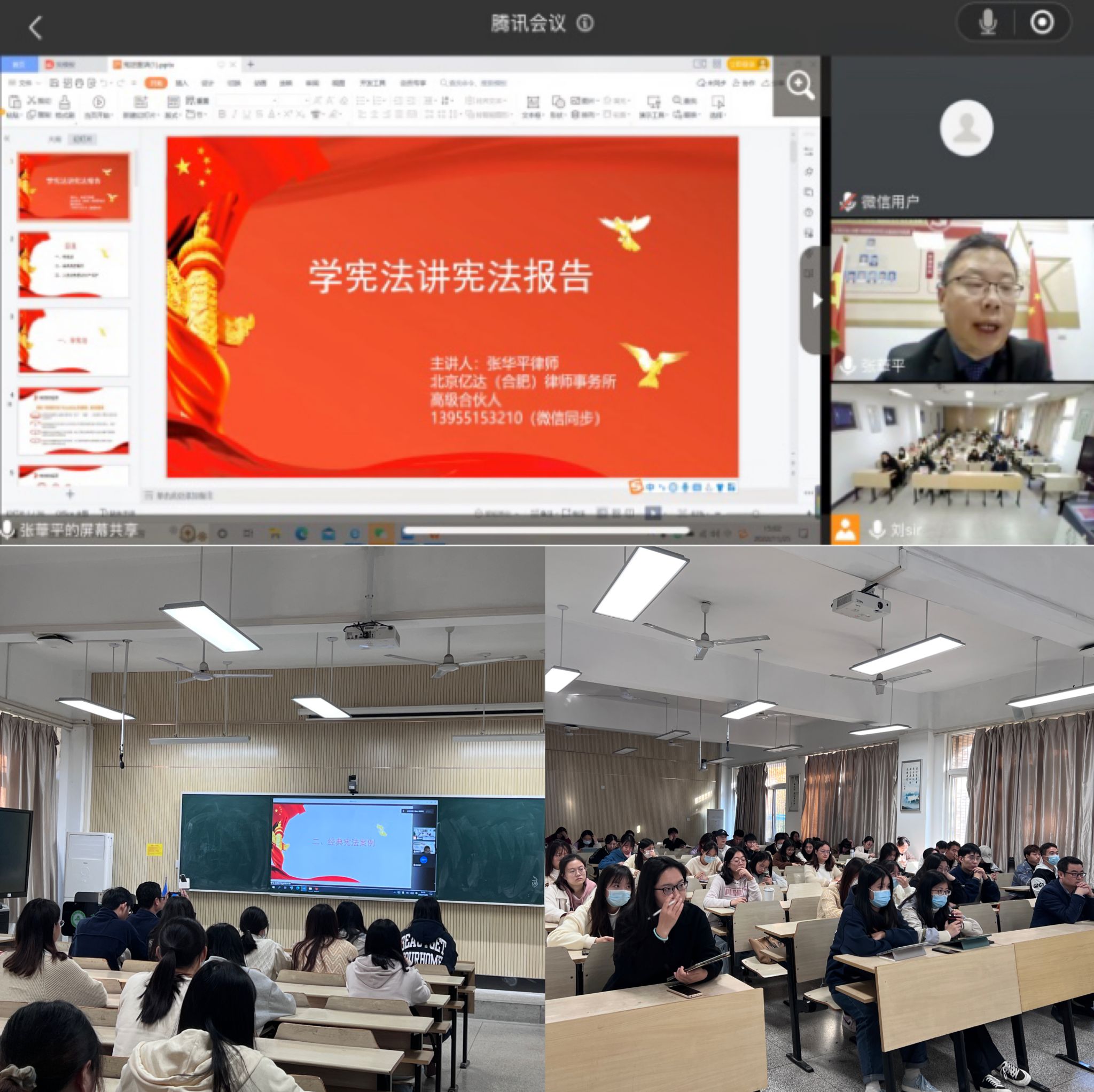 举办学术活动,提升宪法素养。11月25日,学院邀请北京亿达(合肥)律师事务所高级合伙人张华平律师开展“学宪法 讲宪法”专题讲座。张华平以宪法条文为基础,解读宪法制定的历史原因及重要性,并结合自身律师从业经验,多视角讲述宪法知识,宣传宪法理念,弘扬宪法精神。