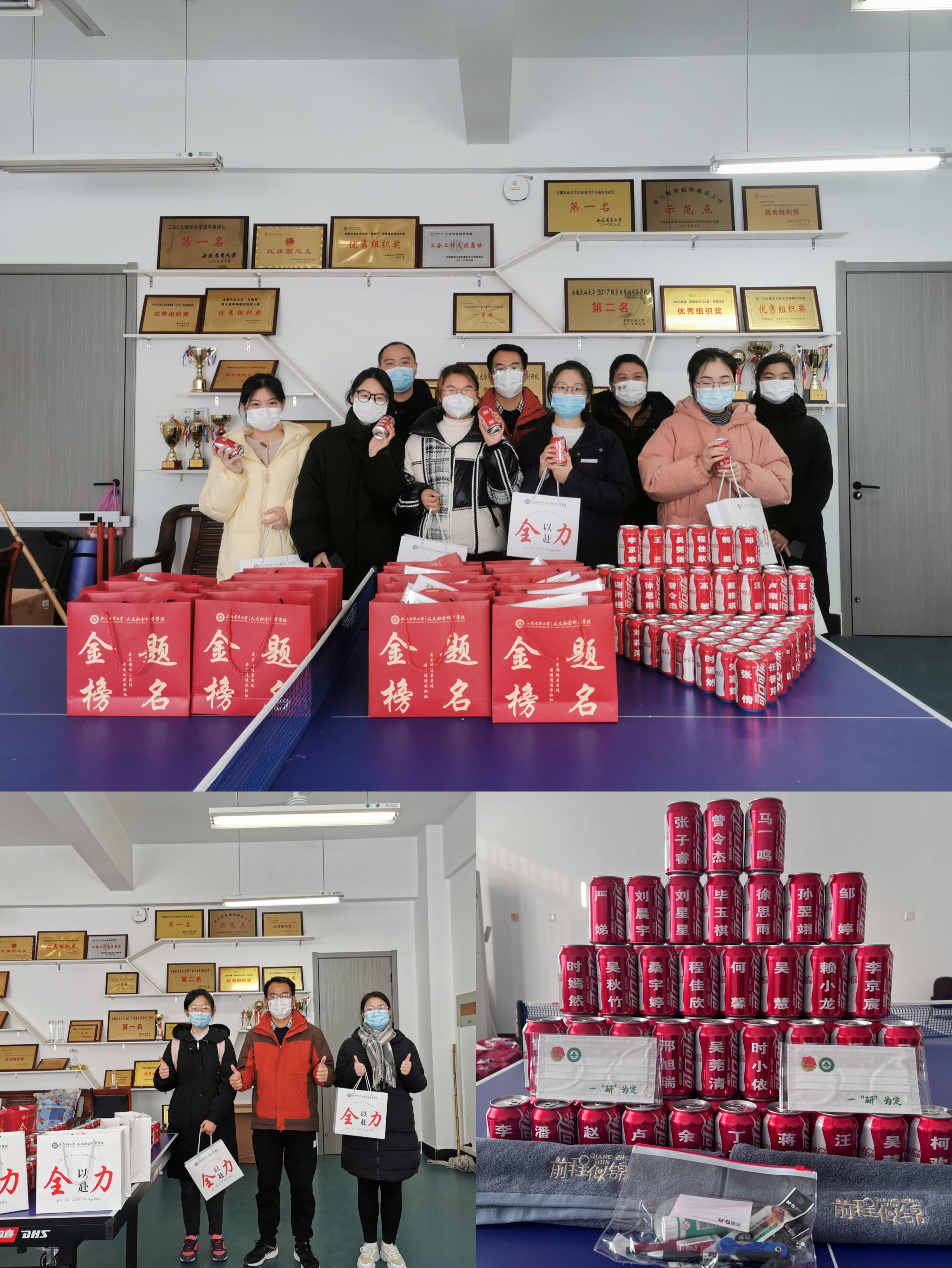 学院为每一位考研学子精心准备了暖心大礼盒——文具袋、定制的毛巾和可乐、“一‘研’为定”文创口罩,每一份礼物都寄托着学院对考研学子的关怀和祝福。文具袋象征着对诸位学子的支持,毛巾和手提袋上也印有逢考必过、前程似锦、全力以赴的字样。学院领导与毕业班辅导员们将一份份考研礼盒送到了考研学子的手中,将温暖传递到每位考研学子的心里。同时,嘱咐同学们在冲刺阶段注意劳逸结合,保持乐观平常心。如在校期间遇到任何困难都可以寻求老师们的帮助,学院全体老师都是同学们最坚强的后盾。收到礼盒和祝福卡片后同学备受鼓舞,纷纷表示一定会拿出最好的状态冲刺,不辜负领导和老师的殷切期待,用优异的成绩回报老师和学院。