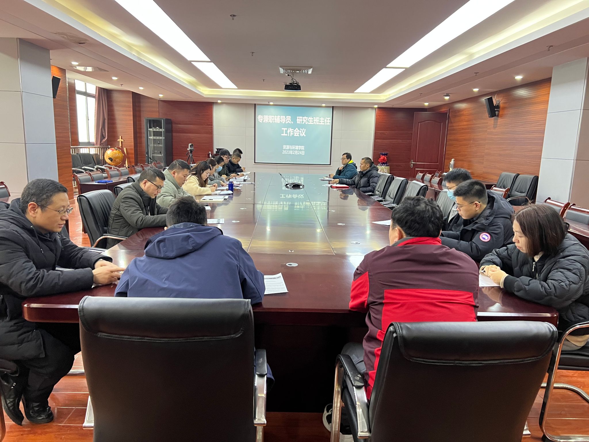 本网讯 2月24日上午,资源与环境学院于中西部综合楼510会议室召开专兼职辅导员、研究生班主任工作会议,就春季新学期学院学生教育管理与服务工作进行再部署。学院副院长张震,全体本科生辅导员、研究生班主任参加会议。会议由学院党委副书记、纪委书记、副院长姚洪章主持。