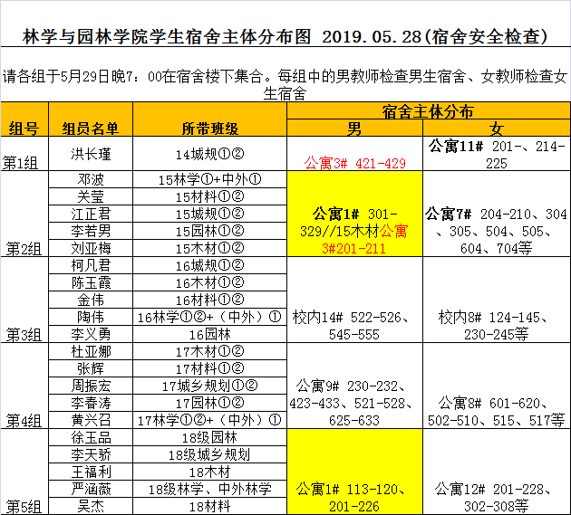 本网讯:夏季来临,为做好宿舍用电安全等工作,5月29日晚,林学与园林学院组织全体专兼职辅导员开展宿舍安全卫生检查活动。