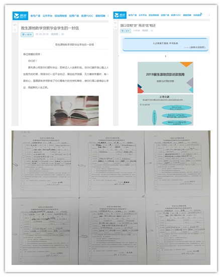 诚实是美德,信用是生命。毕业生离校之际,信息与计算机学院通过易班、微信等媒体平台推出“致生源地助学贷款毕业学生的一封信”和“国以诚相‘贷’ 我须‘信’相还”两期专题内容,为毕业生宣传助学贷款还款政策和征信知识,同时,组织贷款毕业生签订《还款承诺书》,做出个人还款承诺说明。线上线下相结合,为学生还款办理给予温馨提示,同时,树立了诚信为本、操守为重的信用意识和道德观念,强化了诚信教育效果。