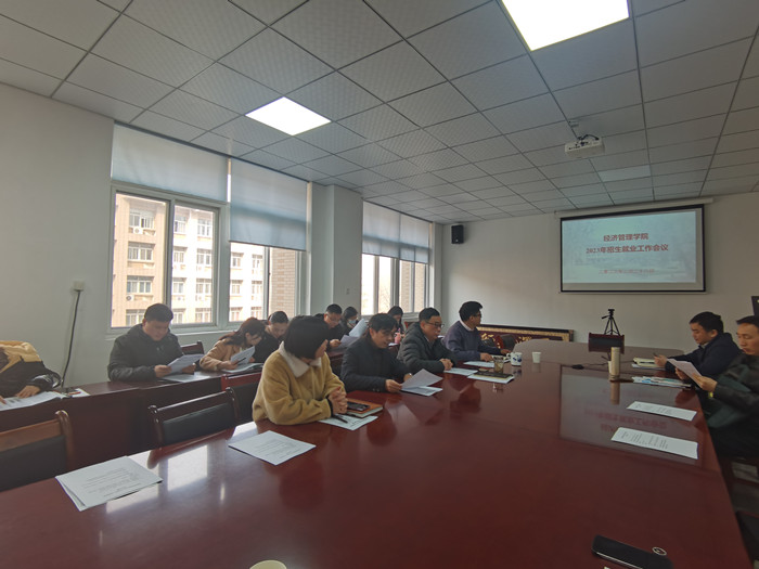 本网讯 为全面贯彻落实党的二十大精神,严格执行党中央、国务院和省委、省政府“稳就业”“保就业”决策部署,扎实推进学院招生就业工作。2月28日,经济管理学院召开了2023年第一次招生就业工作推进会议。学院2023年招生就业领导小组全体成员参加会议。会议由院党委副书记、常务副院长何如海主持。
