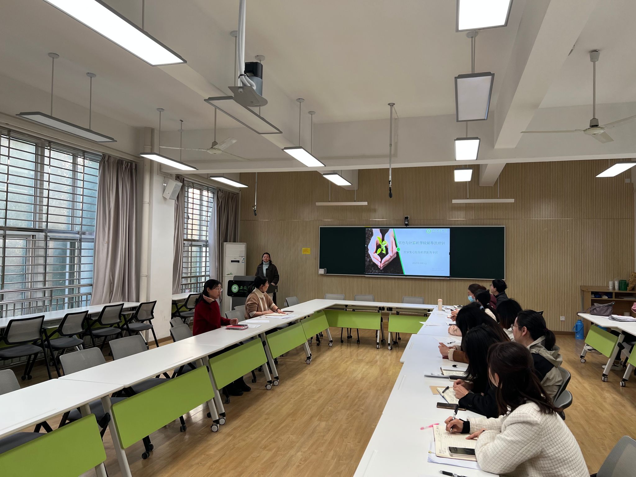 本网讯 3月3日,信息与计算机学院召开辅导员工作例会暨心理危机干预与预防专题培训会。学院党委书记葛红、学院党委副书记李南飞及全体专兼职辅导员参加会议。