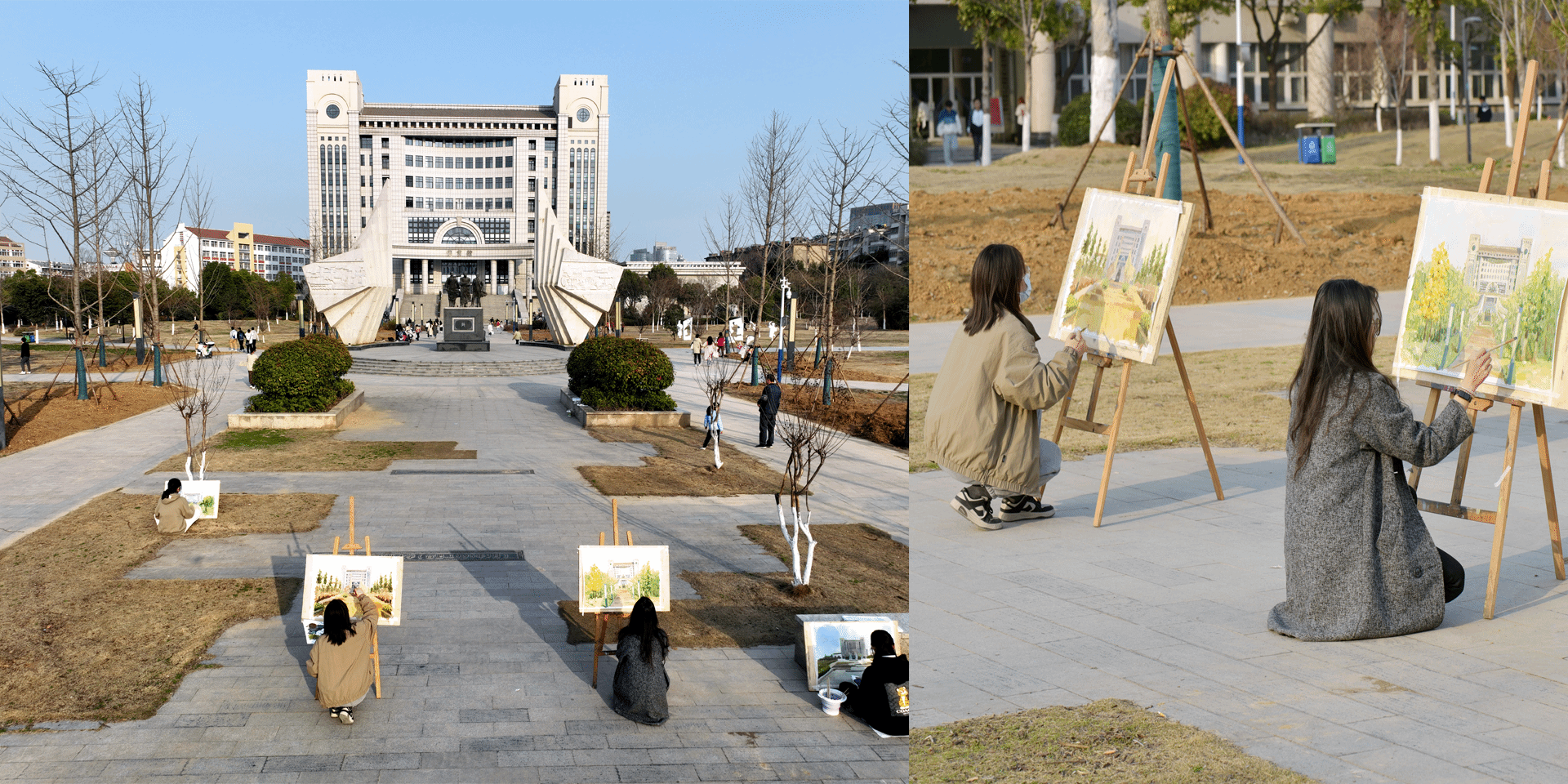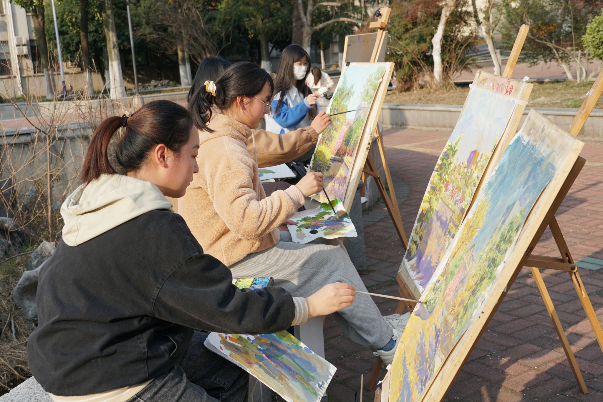 本次活动吸引了很多学生来到写生现场,分别坐在勤政楼西侧梅园广场和西区广场“一里银杏”等各个角落,用心描绘他们眼中的校园新美景。校园里的一草一木、一花一树、一砖一瓦,在他们的画笔下定格,在创作过程中纷纷感叹:“发现学校在校园环境提升后,春日里的校园很美很漂亮,能用画笔亲手描绘校园的美我觉得特别有意义”“长时间的书本学习,会感受到枯燥,偶尔来感受一下艺术的熏陶,走近自然,放松自己,心情愉悦”“今天让我感受到一个非专业的也可以画出一幅作品,立马有了自信,在后面学习中也有了新的动力”,学校通过不同形式的美育课堂,推进学校美育教育的发展,让同学们亲近自然、贴近自然、感受自然,尽享大自然的精美雅致,释放心情……