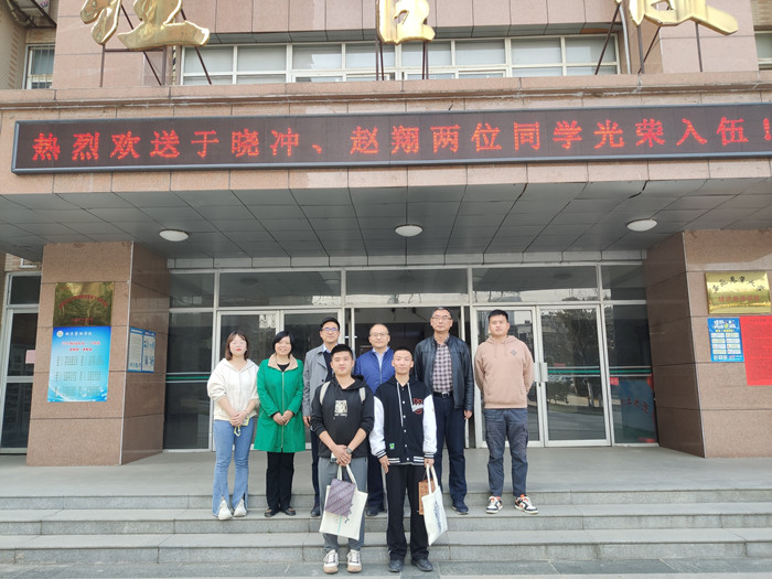 会议最后,赵智寄语入伍青年,强调参军入伍是人生中的重要决定,鼓励同学们珍惜此次入伍机会,努力在军队的大熔炉中淬炼成钢,不负个人青春,不负时代重托。随后,与会领导和两名同学在学院广场进行了合影留念。
