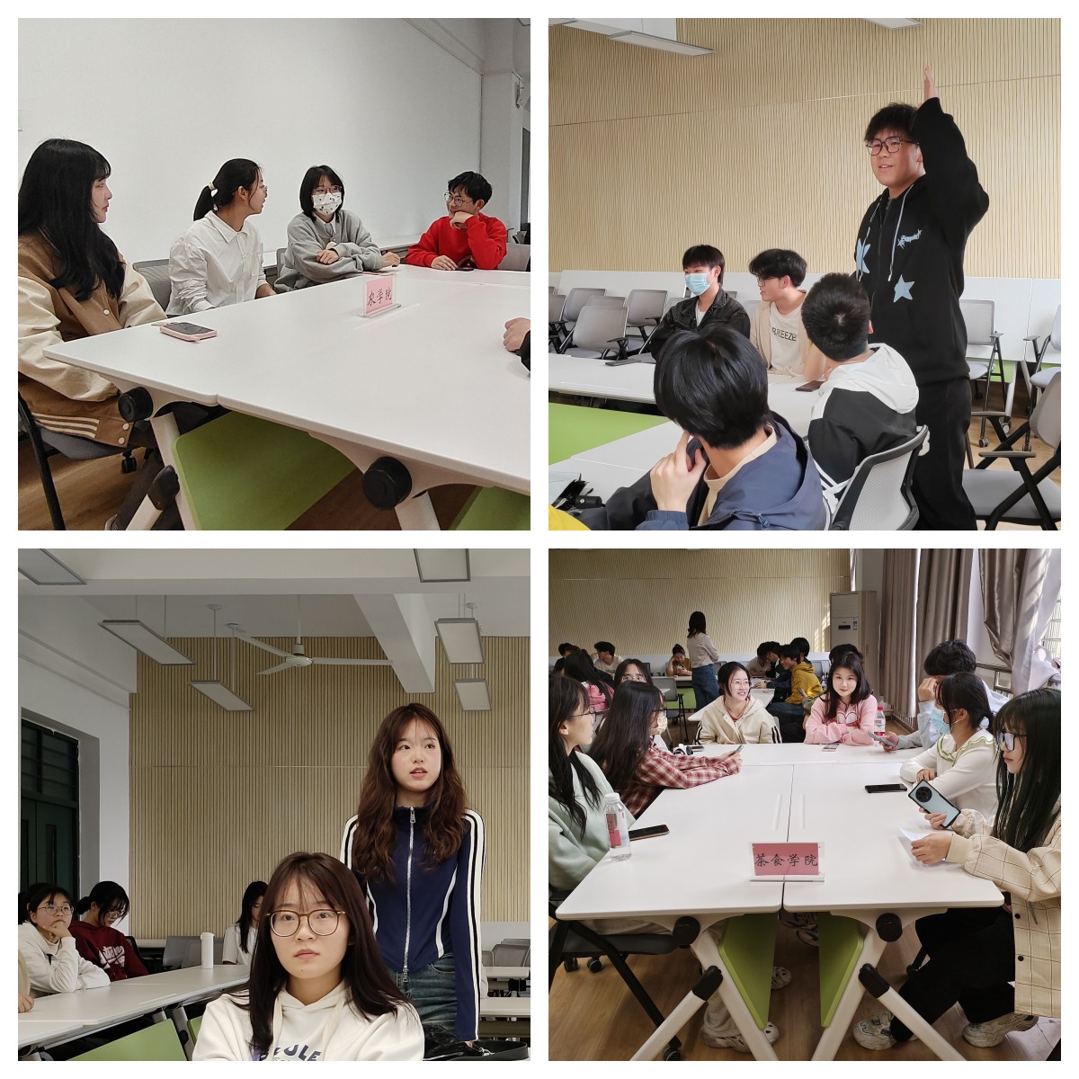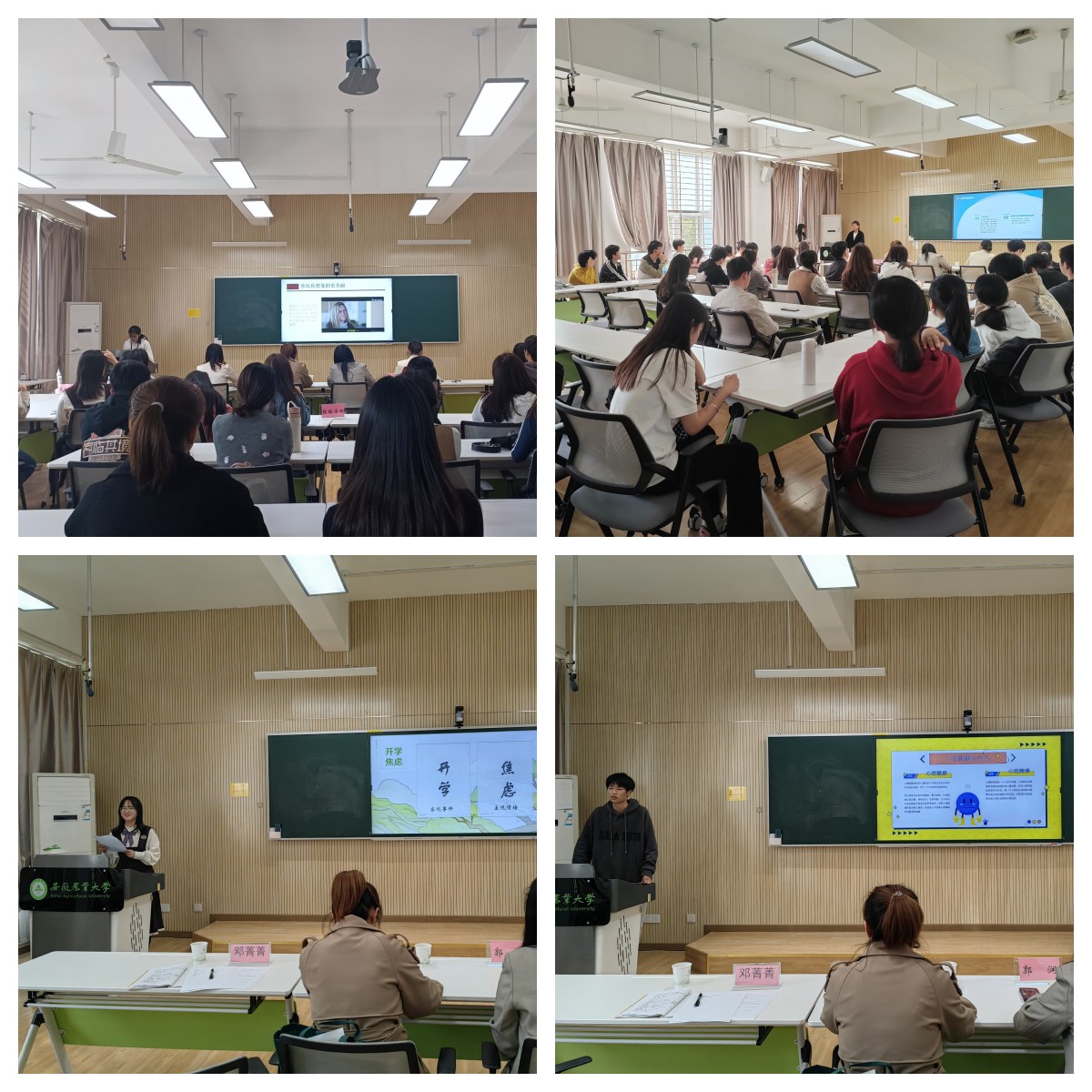 本次交流研讨会主要分为主题班会展示、座谈交流以及指导培训三个环节。主题班会展示环节,来自四个学院的心理委员基于朋辈视角,围绕同学们关注的“开学”“考试”等热点话题,从自我探索到人际交往再到压力缓解,多主题多形式地进行班会展示。信息与计算机学院的杨倩同学以《踏上自我探寻之旅》为主题,从生动性的影音资料出发再引入富有理论性的“乔哈里之窗”的自我分析法,带领同学们踏上自我探寻之旅;轻纺工程与艺术学院的窦晓鑫同学围绕同学、室友、家人以及恋人等多重人际关系,逐一阐明交往原则和策略方法,班会以“温暖的抱抱”游戏结束;茶与食品科技学院的许丹宁、农学院的严轩韬分别就期初同学们关注的“开学”“考试”热点话题作了主题为《如何缓解开学焦虑》、《如何缓解考试焦虑》的班会展示。许丹宁通过与现场同学的互动,将班会推向热烈的氛围;严轩韬在现场阐释了提升积极心态的方法,给予师生启迪。