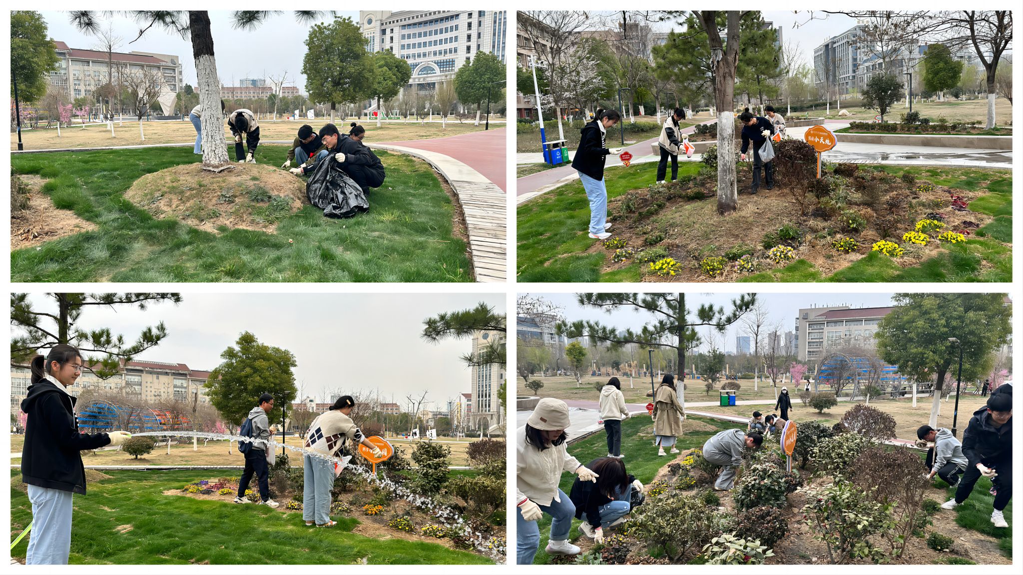 全员参与,谱写“爱卫”新篇章。为进一步推深做实爱国卫生运动,学院以劳动教育为切入点,将学院公共区域划分为四季小花园、劳动小天地、经管楼内、前广场、西侧、东侧、北侧7块劳动责任区,采取“支部+班级按季度承包形式进行全面清理维护。截至316日,学院已开展3次劳动教育活动,共计3个党支部、21个班级、200余师生参加,“四季小花园”“劳动小天地”播花种、灌溉水,对责任区的垃圾杂物、枯枝落叶、桌椅板凳进行全面清洁整理,掀起全员劳动高潮。