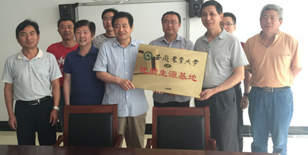 本网讯为进一步落实优秀生源基地建设工作,加强学校与地方中学之间的交流,宣传我校招生政策,6月26日动物科技学院在院党委书记张平的带领下,来到泗县一中进行安徽农业大学优秀生源基地建设签约挂牌,动物科技学院副院长孙裴、院团委书记蒋榕参加了此次挂牌工作。