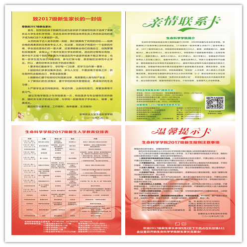 学院迎新现场的“亲情联系卡”和“温馨提示卡”给新生和家长留下了深刻的印象。卡片中公开了学院领导、辅导员联系方式,随时为新生排忧解难,尽显人文关怀;“致新生家长的一封信”更是希望可以实现“家校合力”,成功搭建起与新生家长的沟通交流平台;“新生报到注意事项和温馨提示”,将报到流程、入学活动安排等按照“时间轴”的形式一一呈现。精心设计的“私人定制”卡片,温馨的入学“指南针”,让新生体会到浓浓的亲情。