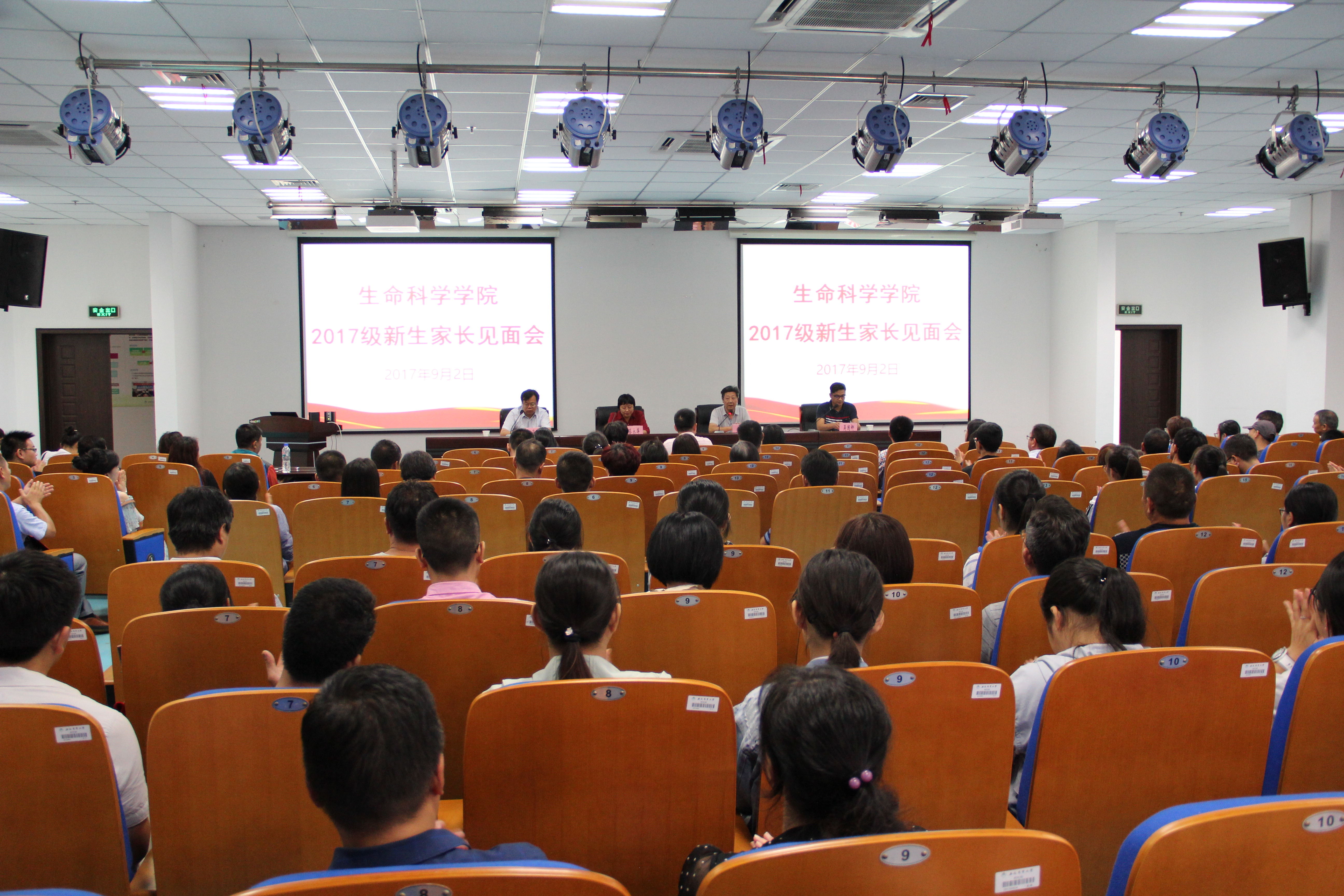 9月2日下午,生命科学学院在科技楼441室召开了2017级新生家长见面会,近200名新生家长参加了见面会。学院党委书记朱绍友、常务副院长蔡永萍、党委副书记兼副院长吴国卿、副院长江海洋以及全体新生辅导员参加了本次家长见面会。学院领导以“面对面”的形式向家长介绍了学校及学院概况、教育教学、专业前景、学术科研、师资力量、就业方向等情况,并就家长广泛关注的问题进行了讲解和答疑。同时,也希望家长能够和学院保持联系,加强沟通,“家校”合力,共同做好学生的教育管理工作。