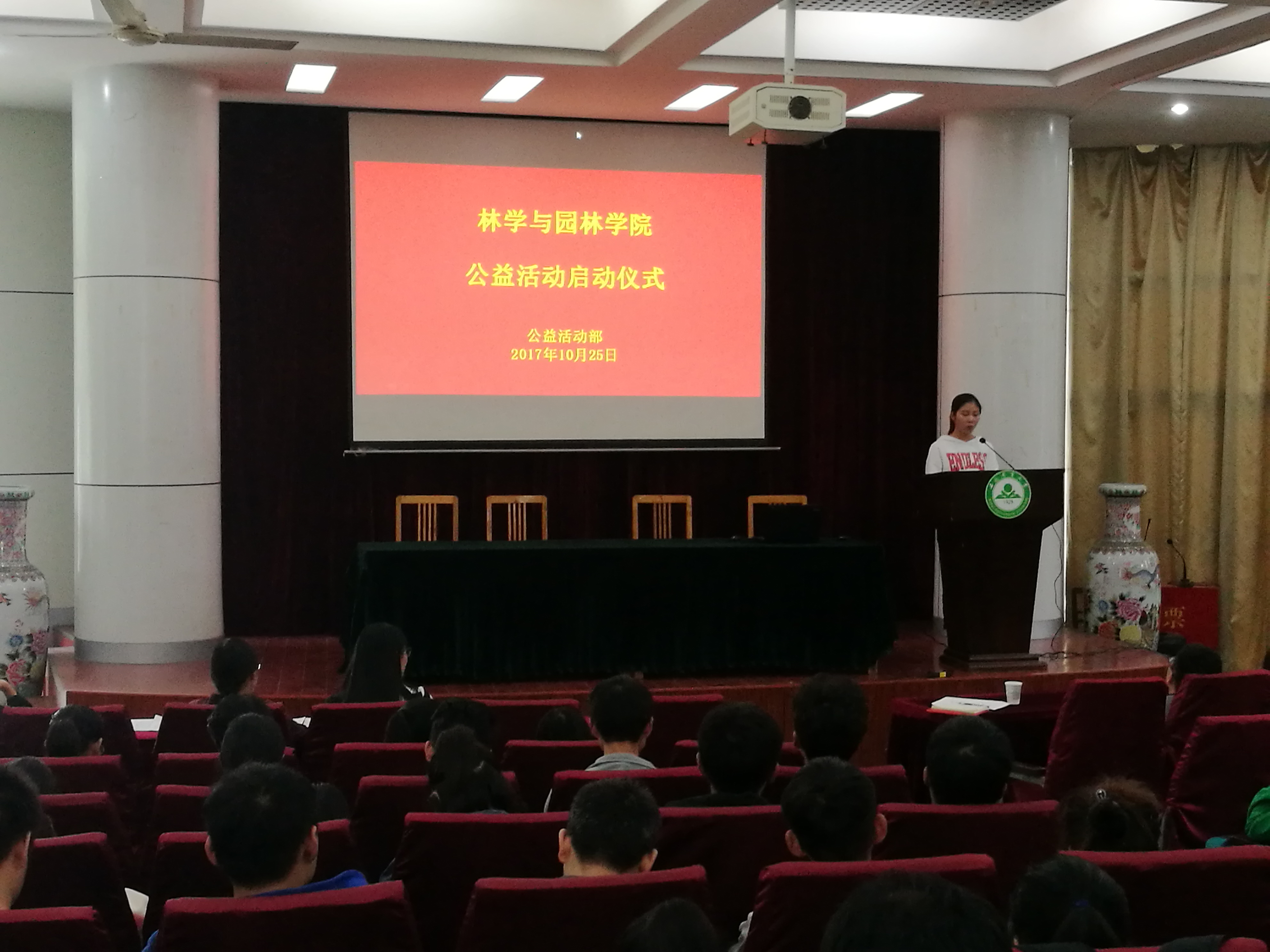 启动公益活动,旨在引导同学们通过校院班各级公益活动平台,丰富课余生活,锻炼自己,培养大学生社会责任意识、公德意识、感恩意识,践行公益理念。(林学与园林学院:柳洁 )