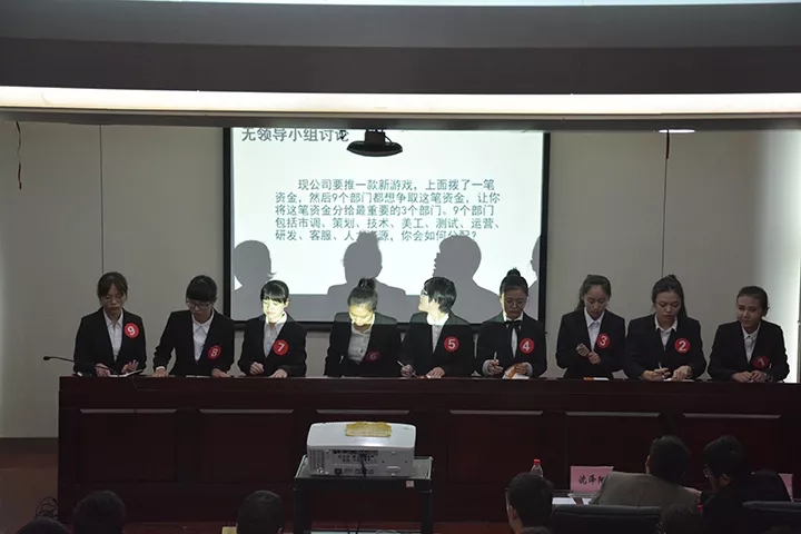 经过初赛的筛选,共有九名选手进入决赛。决赛分为无领导小组讨论、自我介绍、必答题、职场故事编说四个环节。在无领导小组讨论环节中,选手们围绕题目进行认真冷静的思考,有理有据的观点阐述和攻守兼备的自由发言以及详尽的总结陈述赢得了阵阵掌声。随后选手们分别从学习情况、求职意向、职业认识、竞选优势、实践经历等方面通过精准的语言表达加上精美的PPT展示做出了的自我介绍。面对必答题环节的提问,选手们镇定自若、认真思考、从容作答。选手利用所给的关键词,结合具体事例,现场编说了一个个生动、寓意深刻的职场故事。随后,评委老师就选手们的表现逐一做出了点评,并从语言表达,逻辑思维及面试技巧等方面对比赛进行了总结。