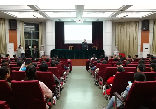 本网讯 薪火相传,共济风雨路,为增进与校友之间的交流,增强林院学子对自身专业的认识,加强学生对行业的了解,提升创业就业质量。林学与园林学院于11月8日晚在林学楼一楼报告厅邀请华艺生态园林股份有限公司董事长胡优华及他的团队做客《郁林讲坛》做主题为“探索未知,挑战未来”的报告。在华艺生态园林股份有限公司任职的我校十多位历届毕业生,学院200多名林学、园林、规划相关专业学生参加报告会。院党委副书记、副院长江正君主持报告会。