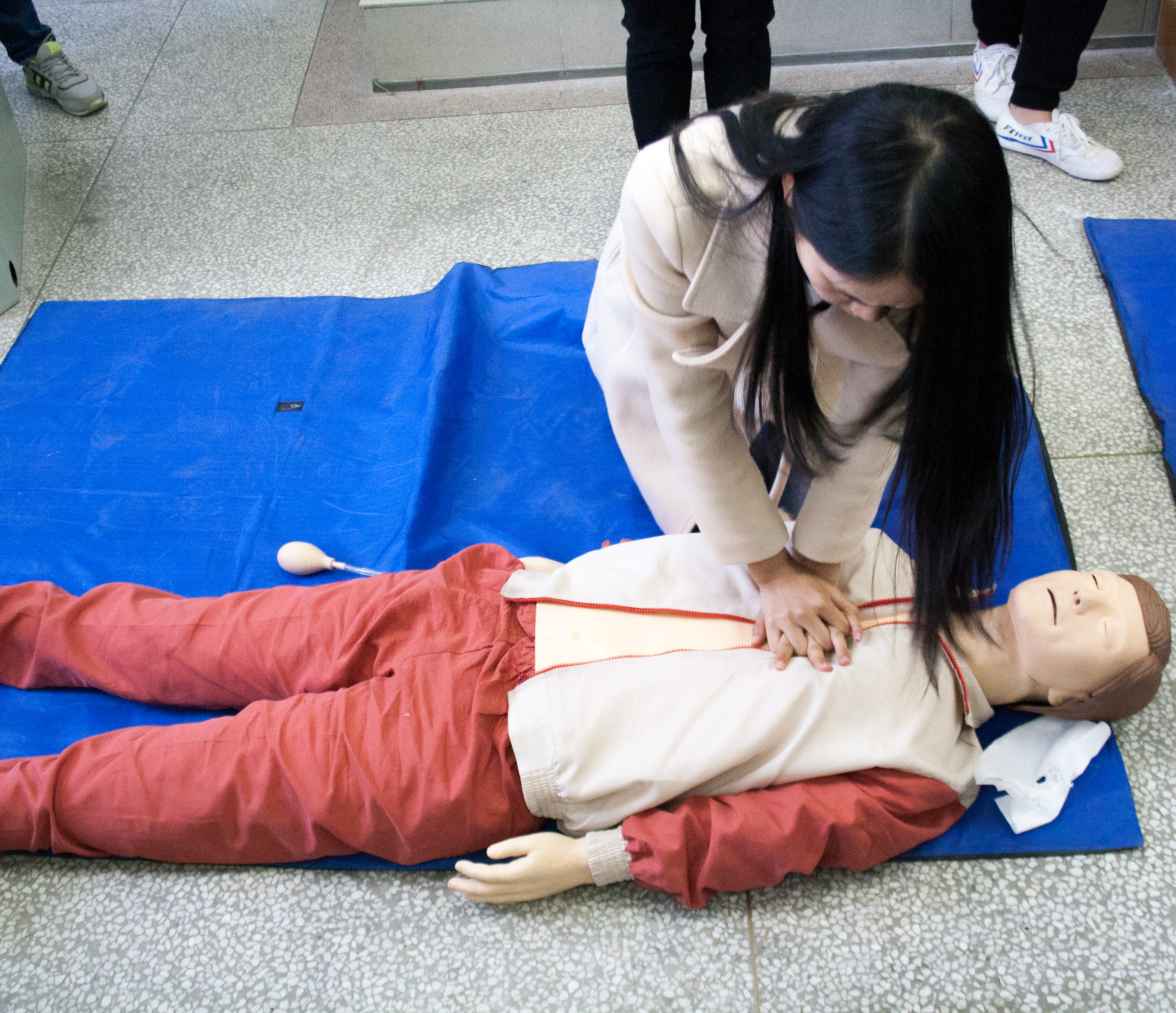 活动共包括知识竞赛、技能培训、实战演练三个环节,吸引约600名同学参与。培训内容涉及学生在寝室生活、运动受伤、突发疾病等紧急状况下的应急救护相关知识。“判断呼吸的同时,用食指、中指并拢触摸两侧颈动脉,看看有无脉动……”26日的技能培训现场,红十字志愿者协会工作人员在模拟心肺复苏操作步骤,台下的同学认真观摩学习并尝试救护演练。培训后,同学们纷纷表示体会到现场救护的重要性和急迫性,全面了解了救护的知识和方法,实实在在掌握了救护的技能,在生活中具有非常重要的实用价值。