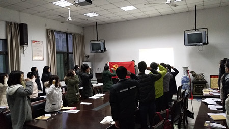 活动上,学院专职辅导员张村侠以“不忘初心跟党走,撸起袖子加油干”为题积极宣讲党的十九大精神,教育广大青年做有理想、有本领、有担当的新时代新青年,引导大家正确认识时代责任和历史使命。最后,与会党员在支部书记张村侠的带领下,面对党旗,重温入党誓词,回顾入党时的庄严承诺和坚定决心。(张村侠 通讯员:赵婷)