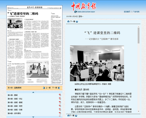 为提升大学生的实践动手能力,她自主开设了综合性、设计性、创新型实验,让部分学有余力的学生可以更好地进行拓展性学习研究。为了实现将“互联网+”引入物理实验教学,2015年1月,她利用小学期节假日和课余休息期间,从理学院“基石”创新班中遴选了3名学生,全身心地投入到研究工作中。“工夫不负有心人”,最终,她们在自主编写的实验报告册里的很多页面上加进了“二维码”,手机轻轻一扫,课件内容、讲义、视频材料一一惊喜呈现,这样既方便了学生的学习,也实现了把教与学装进“口袋课堂”,用手机玩转“智慧校园”。《中国教育报》2015年11月30日以《“飞”进课堂里的二维码》为题,报道了该项物理实验教学改革成果。