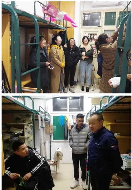 3月4日晚,农学院全体辅导员老师在院党委书记汪凤莲、副书记鄢高翔的带领下到学生宿舍看望学生,也为学生们进行了新春的问候。在走访过程中,老师们与大家进行亲切交流,询问同学们的假期生活、家庭状况,学习情况以及新学期的打算。叮嘱同学们在寝室生活中一定要注意人身财产安全,杜绝使用各类违章电器,养成良好的生活习惯;勉励大家勤奋学习,加强锻炼,努力加强自身建设,做好新时代的大学生。(通讯员:仇飞)
