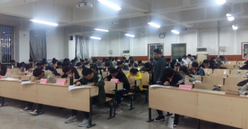 本网讯 为加强学院”三风”建设,工学院在加强教风建设的同时,狠抓学风建设,为营造良好的考风环境,发挥党员的模范带头作用,工学院推行学生党员亮牌参加考试,建立党员文明考试示范岗。2018年4月25日晚19:00~21:00在勤学楼427教室举行的工学院首场考试,9位党员皆坐在教室的前排,亮证考试,考分良好,工学院副院长姚兴贵到场巡考。