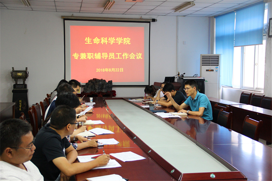 本网讯 8月22日下午,生命科学学院组织全体专兼职辅导员召开专题工作会议讨论布置新学期重点工作。学院全体专兼职辅导员参加会议,会议由学院党委书记张健主持。