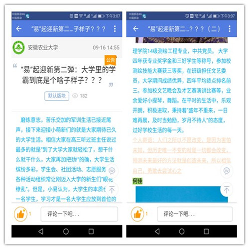 召开校庆主题班会。10月份,理学院各班级开展了以校庆为主题的班会,各班级积极谋划,策划了形式多样、内容丰富的班会,截至10月30日,全院共26个班级740多人次参加到主题班会中。16级信计专业带领大家重温了安农90周年的成长史和奋斗史,增强了学生对母校的了解。18级测绘工程专业通过讲解安农大走“大别山道路”的办学特色等安农故事并进行校史答辩环节,增强大家对学校的认识和理解。18级应用统计学专业通过“感恩母校”诗歌朗诵形式加深大家对学校的感情。多样的活动形式让大家深入了解了学校,加强了班级同学间的凝聚力。
