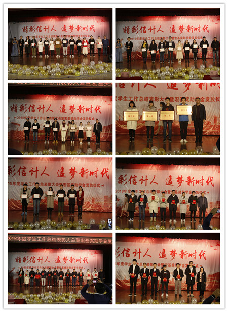 会上,学院对在2018年度荣获先进班级和先进团支部的单位,获得国家奖学金、特等奖学金、宏基助学金和奖学金的先进个人,在新生军训方阵队列和内务评比优秀代表,分别颁发了证书和奖金。激励大家百尺竿头、更进一步,书写更加灿烂的人生华章。