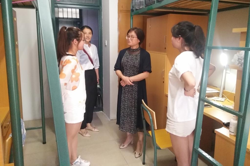 9月7日傍晚,学院领导分别前往男女新生宿舍进行实地走访慰问。走访过程中,学院领导询问了解大家进校后的感受以及生活、兴趣爱好等方面的情况,同时对同学们提出殷切希望,要尽快转变角色,熟悉新的环境,团结同学,处理好各种人际关系,以积极的心态和良好的面貌适应大学校园生活。