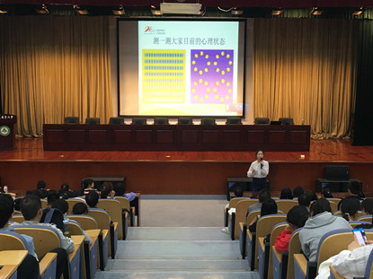讲座伊始,钟晨用心理测试照片与学生间的互动交流暖场,通过“宿舍关系”和“有人不喜欢我”等典型案例深入浅出的讲解了大学生常见的心理问题有哪些、表现出来的特征是怎么样的、产生的原因来自于何处,以及进行自我心理调适和解决严重心理问题的方法,勉励大家正确认识自己,学会情绪控制和心理调适,珍惜大学生活和美好学习时光。