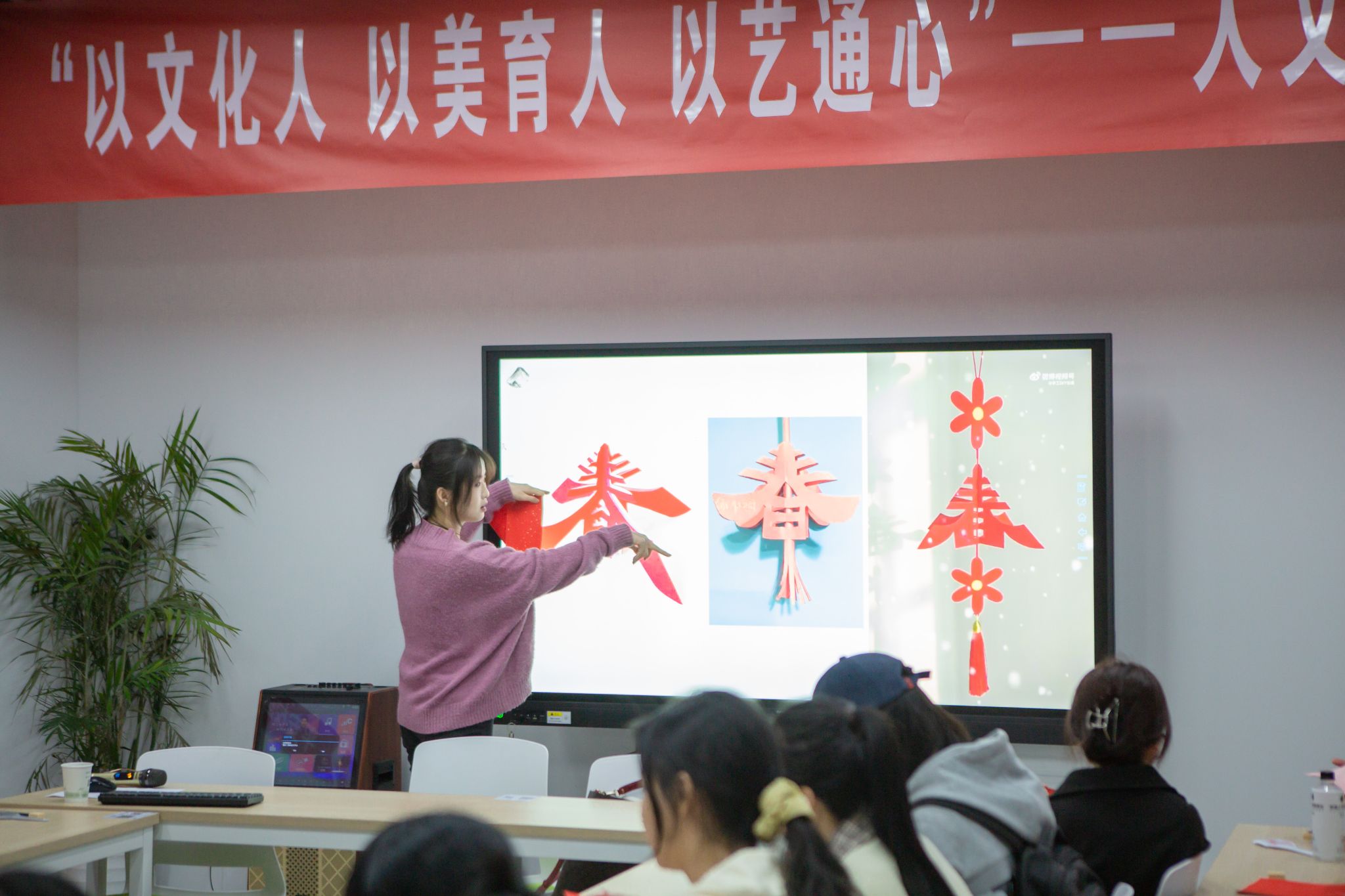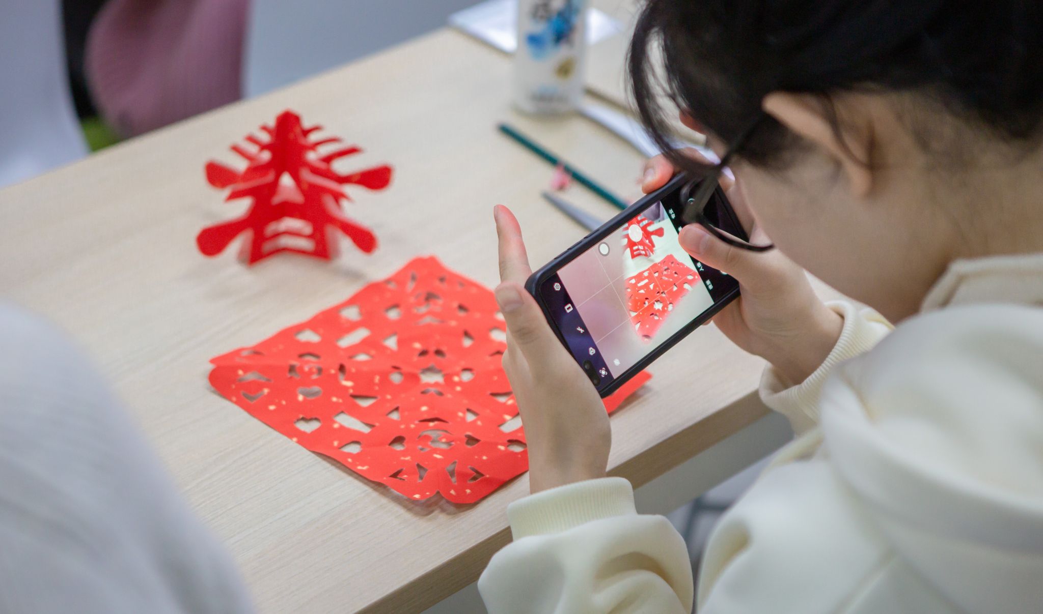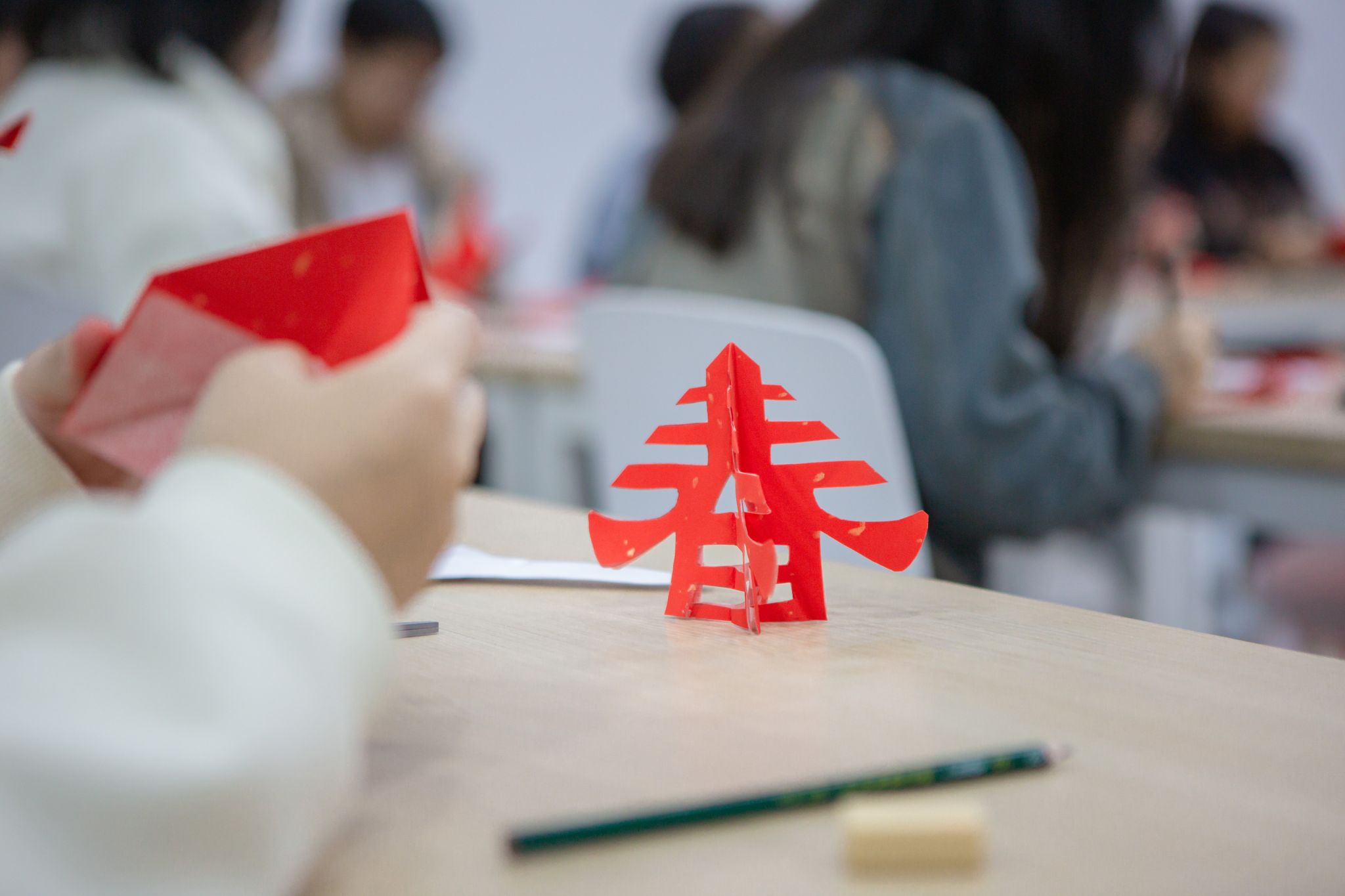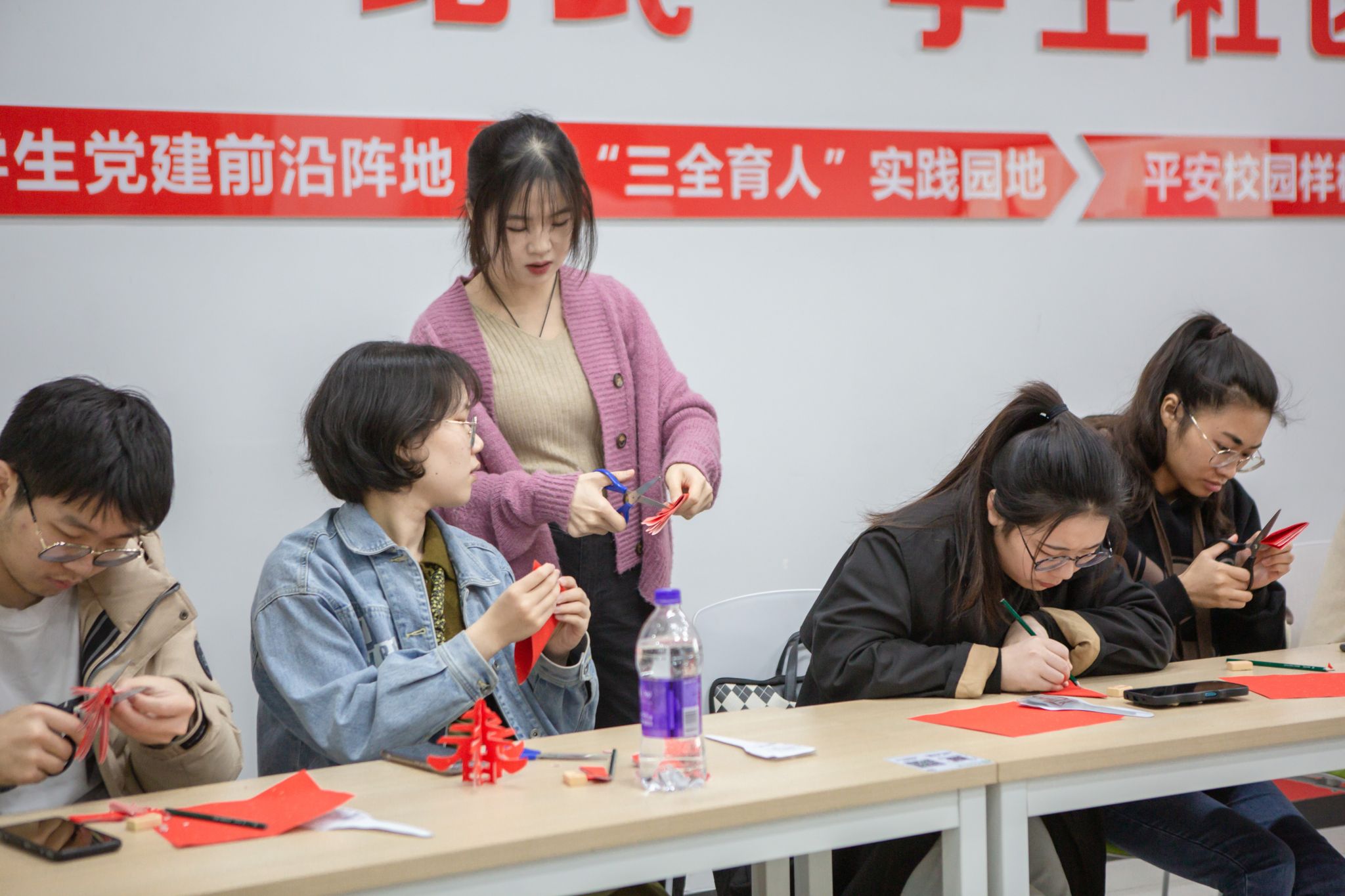 活动伊始,张涵老师向学生们讲解了作为非物质文化遗产——剪纸的起源和历史沿革,并对剪纸艺术的美学价值、艺术特征与发展现状进行了讲述,让学生对这门古老民俗艺术增添了一份感性的认识;她还在现场展示了窗花的剪纸技艺与精美的剪纸作品,让学生了解剪纸艺术的创作过程;在她的指导下,学生们拿起剪刀,开始自主创作剪纸作品,一张张普通的红纸经过同学们的精心剪裁,呈现出各式各样的精巧图样。通过剪纸艺术创作,学生们在这个过程中进一步了解剪纸和剪纸背后的传统民俗文化的魅力。