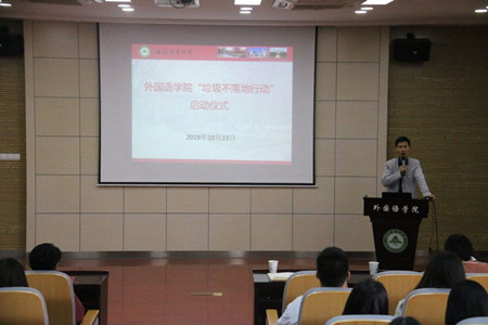 座谈会上,有师生反映学院个别教室存在脏乱差、垃圾随手扔的现象,学院针对师生反映的这一问题高度重视,并决心立行立改,结合部分老师的倡议,学院下发了《关于在学院开展“请走教室字纸篓,我的垃圾我带走”活动的通知》,按照要求,学院将逐步撤走教室字纸篓,统一设置楼层垃圾箱,加强与物业人员的工作协调,动员全院师生以主人翁意识积极参与,做到改善外语楼环境,从自身做起。做好活动宣传氛围的营造,先后制作多期“垃圾不落地行动”自媒体推送,在学院大厅和各教室张贴宣传海报和文明口号,并于23日中午在外语楼502报告厅举行“垃圾不落地行动”启动仪式。仪式上,学院党委副书记黄庆华要求所有学生立即行动起来,养成良好的个人文明的行为和习惯,不仅要做行动者,更要成为宣传员和监督员,以主人翁的姿态支持参与这项活动。学院还召开了班主任会,部署并强调有关要求,着力将活动抓细抓实。