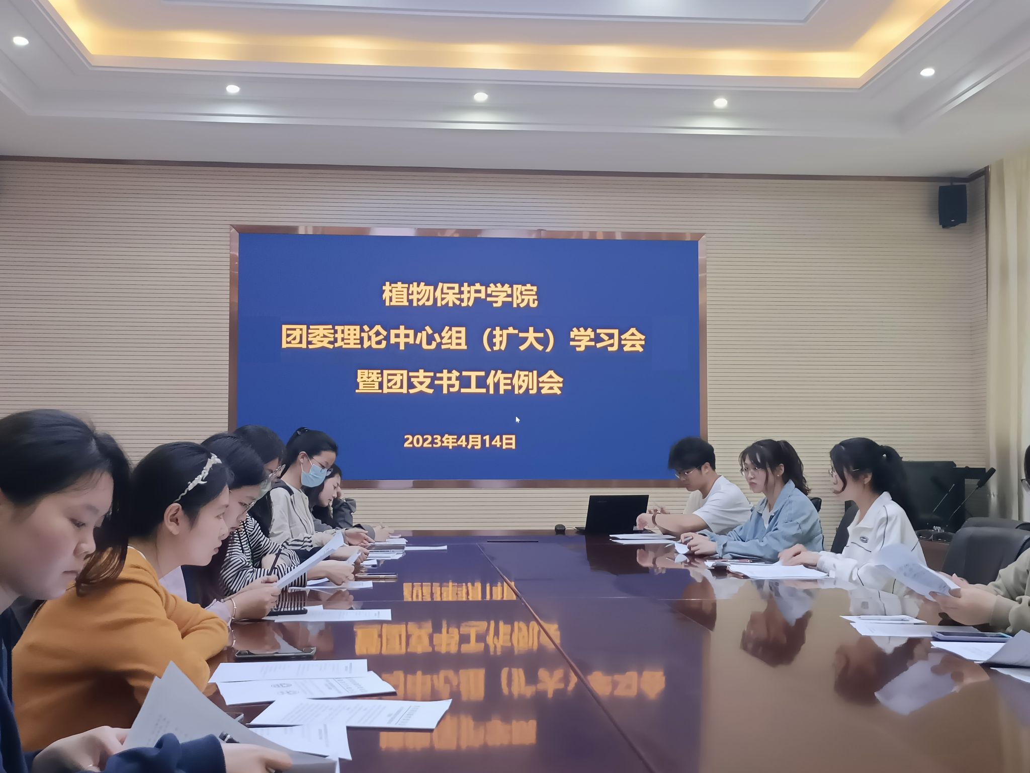 本网讯 2023年4月14日,植物保护学院于中西部综合楼1213会议室召开团委理论中心组(扩大)学习会暨团支书工作例会。学院团委委员、团支部书记参加会议。会议由学院团学工作负责老师主持。