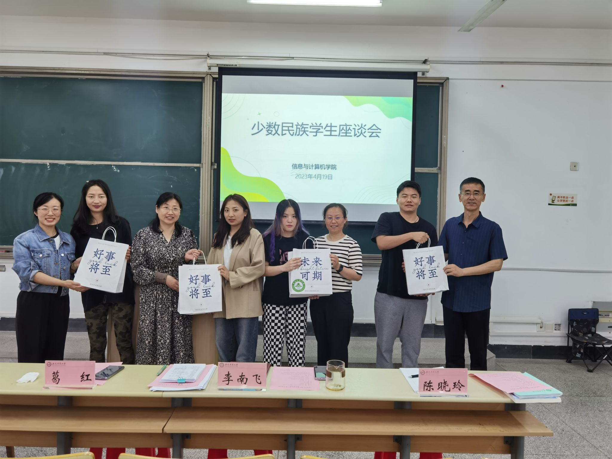 会上,学院党委书记葛红带领少数民族学生学习了《2023年全省民族团结进步宣传教育工作方案》,围绕牢固树立中华民族共同体意识讲授思政课,要求少数民族学生注重文化交融,牢固树立“四个与共”共同体理念,争做铸牢中华民族共同体意识的践行者。院党委统战委员、副院长张武围绕少数民族学生提出的学业困惑、学科竞赛、大创项目等与少数民族学生进行了深入指导。与会学生就在校期间思想、学习、工作、生活等汇报了各自情况。最后,学院详细了解毕业班少数民族学生的就业去向落实情况,对考研、就业过程中遇到的困难进行指导,向毕业班少数民族学生赠送了学院精心准备的求职加油包,进一步动员和推进就业工作。