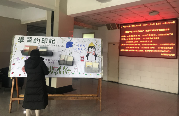 本次活动经过班级初选,共有近50本优秀笔记推荐参加学院评选,范围覆盖全院各个专业。学院专业课授课教师从字迹工整、笔记排版、逻辑结构、内容归纳等方面展开评议,最终2018级英语1班薛妮等13名同学的学习笔记获得学院学习笔记评选优秀奖。优秀学习笔记在外语楼一楼大厅集中展出。