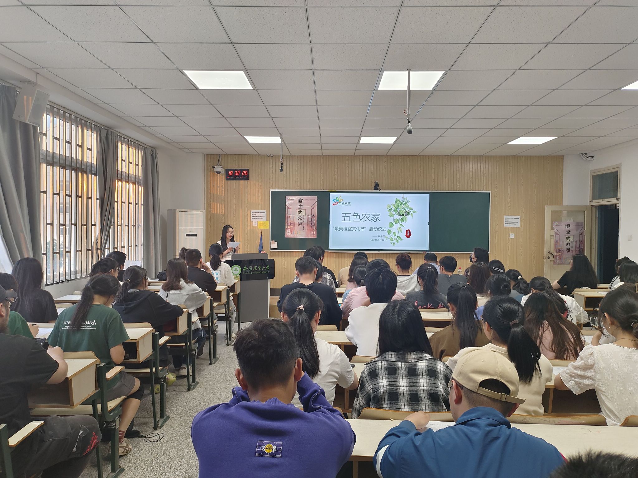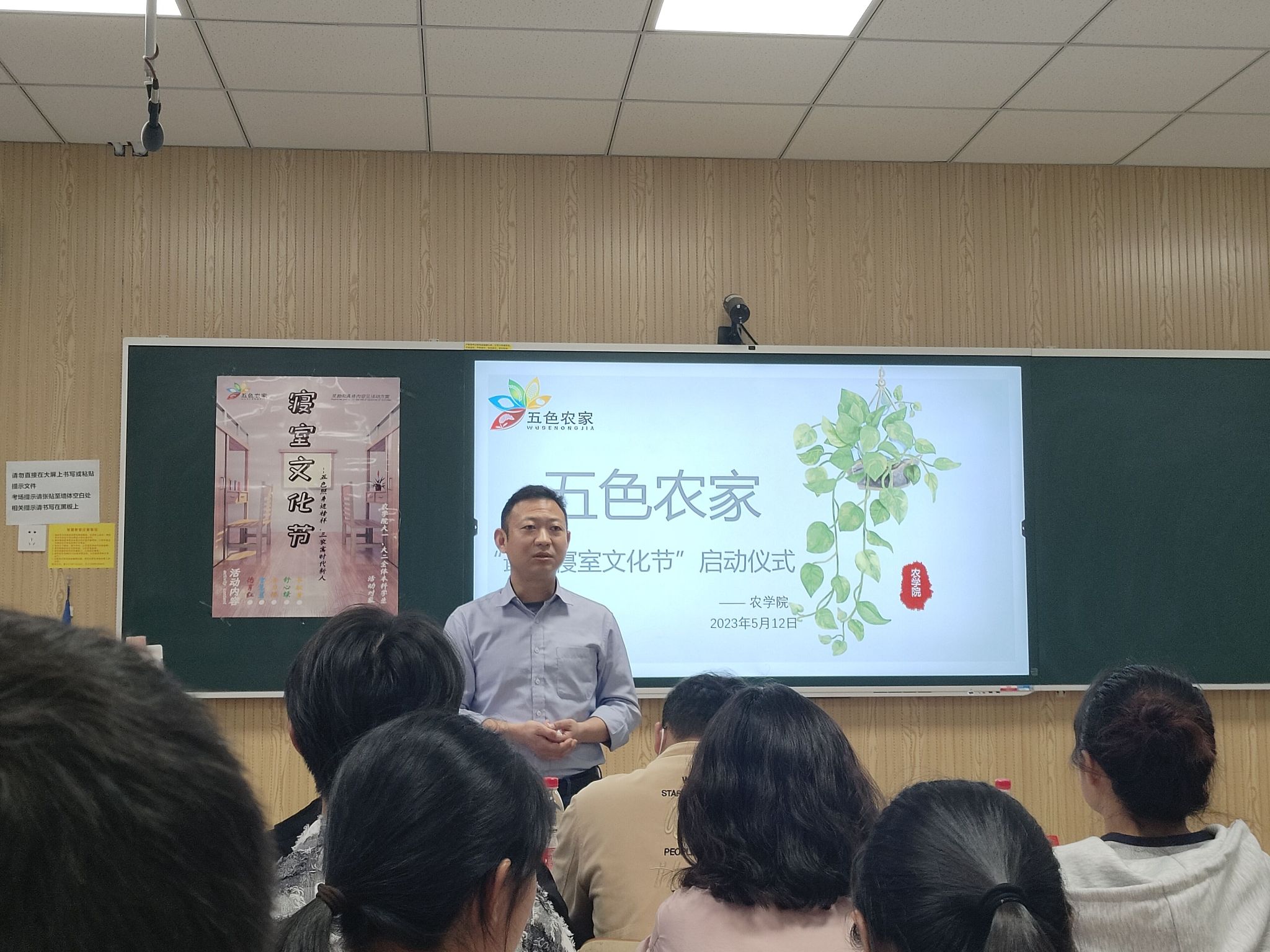 本网讯 为深入开展爱国卫生活动,弘扬积极健康的宿舍文化,营造和谐奋进平安的宿舍氛围,创造丰富多彩的宿舍活动,5月12日下午18:30,农学院在勤学楼312开展了“五色农家”寝室文化创建启动仪式。学院党委副书记吕大鹏、学生工作负责老师周毅、学院团委指导老师范宇、22级本科生辅导员陶帅、院学生会代表、全体21级、22级本科生班长及寝室长参加会议,会议由志愿公益部部长郑梦馨主持。