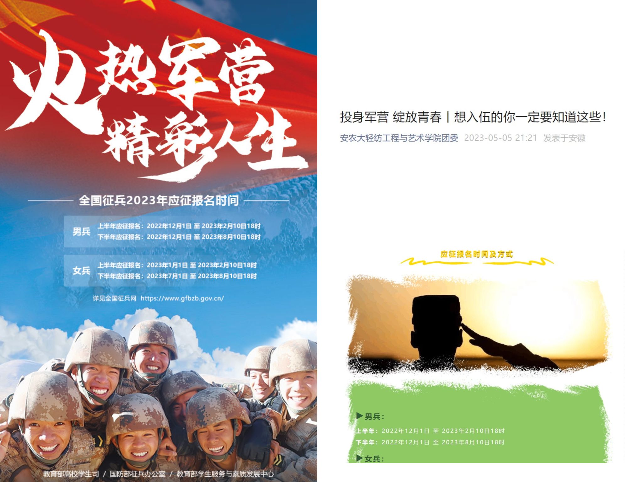 学院通过线上线下多渠道进行宣传,通过线上微信公众号、线下海报等方式进行宣传,介绍报名时间及方式、应征对象及条件、优惠政策等详细情况,学院持续营造良好的征兵氛围。参加入伍是大学生成长成才、提升思想境界、锻炼意志品质、提升综合能力的重要途径,对实现军队和国防现代化、实现强国强军中国梦有着重要意义。积极响应国家号召到部队的大熔炉中锻炼自己,提高自己,为祖国的国防事业作出应有的贡献。