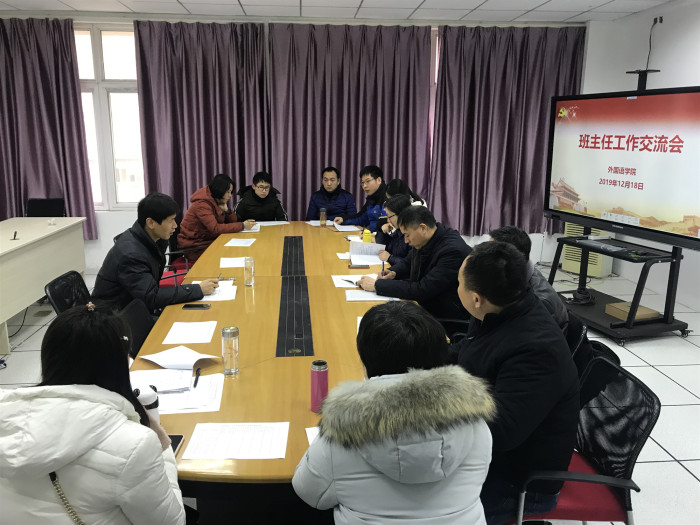 本网讯 12月18日下午,外国语学院2019年度辅导员工作述职交流会在外语楼405会议室召开,学院全体专兼职辅导员参加会议,交流会由学院党委副书记黄庆华主持。